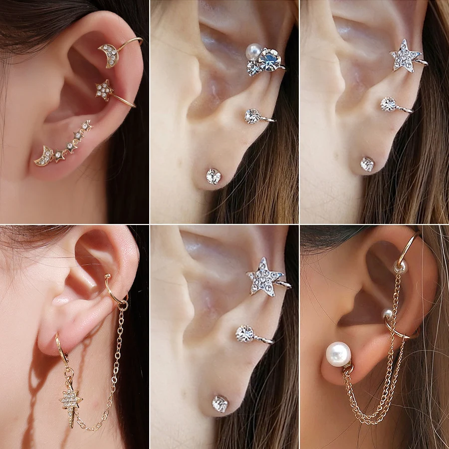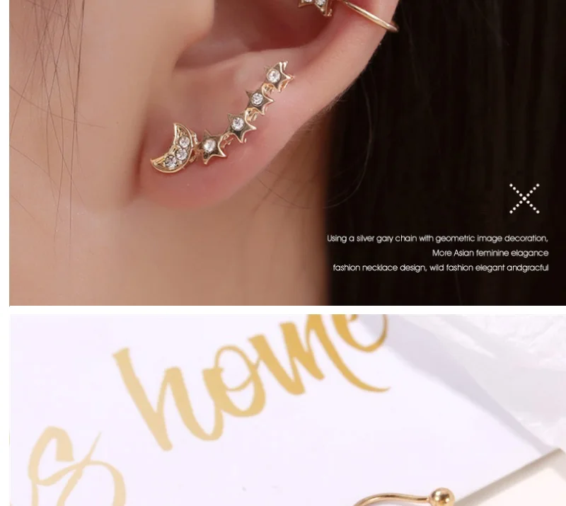 Серьги-кисточки с Луной и звездами женские, уникальные золотистые серьги-клипсы без проколов, ювелирные украшения для ушей, вечерняя бижутерия, 3 шт.