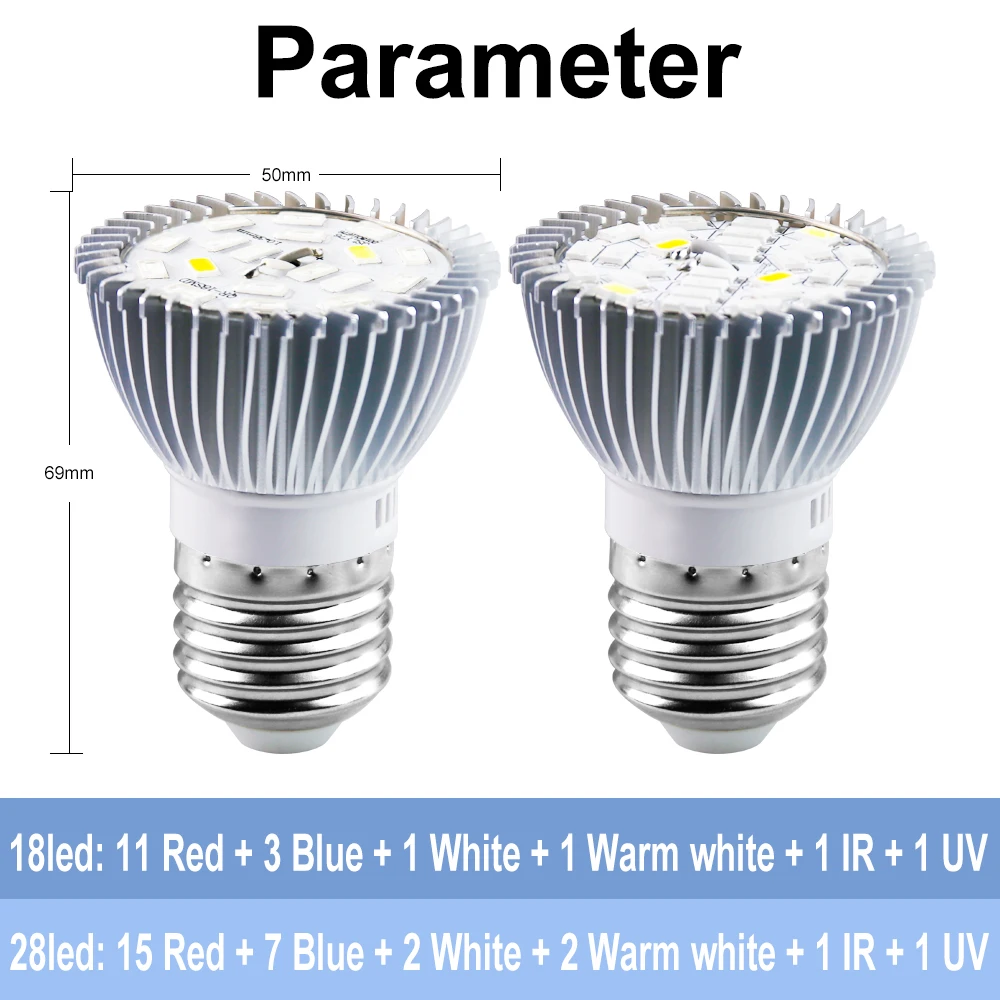 Фитолампа, светодиодный светильник полного спектра для выращивания растений, вилка стандарта ЕС и США, E27