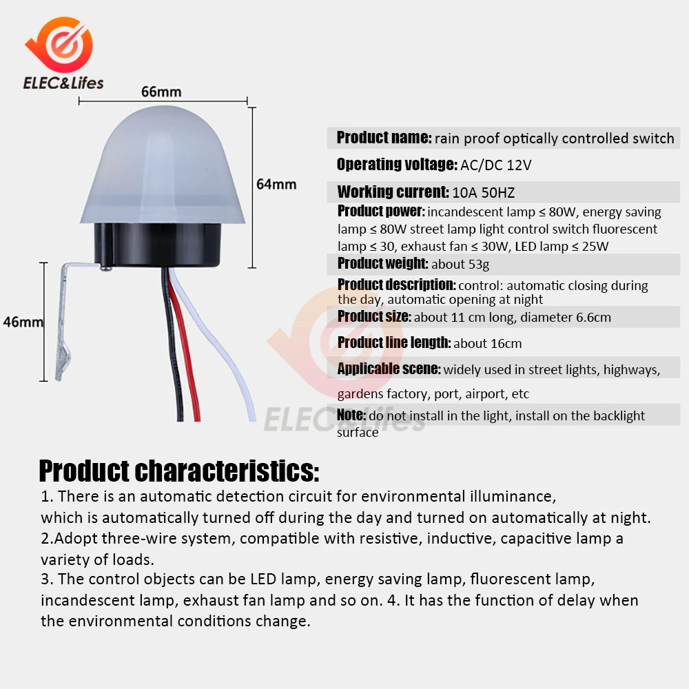 Водонепроницаемый ас-20 переключатель управления освещением 110 В 220 в 12 В фотопереключатель автоматического включениявыключения фотоэлементов уличный светильник сенсорный переключатель