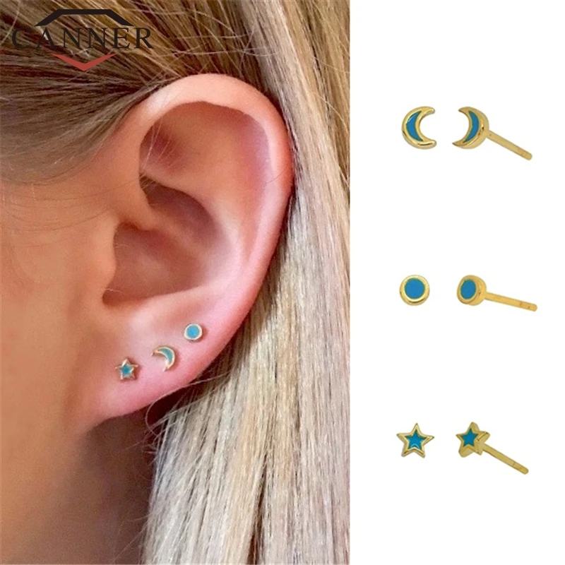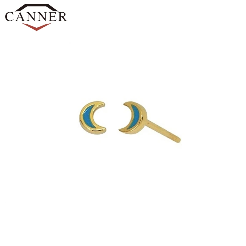 Милые крошечные геометрические серьги-гвоздики с Луной и звездой для девочек из стерлингового серебра 925 пробы, золотые мини-серьги INS, студенческие модные ювелирные изделия, подарок