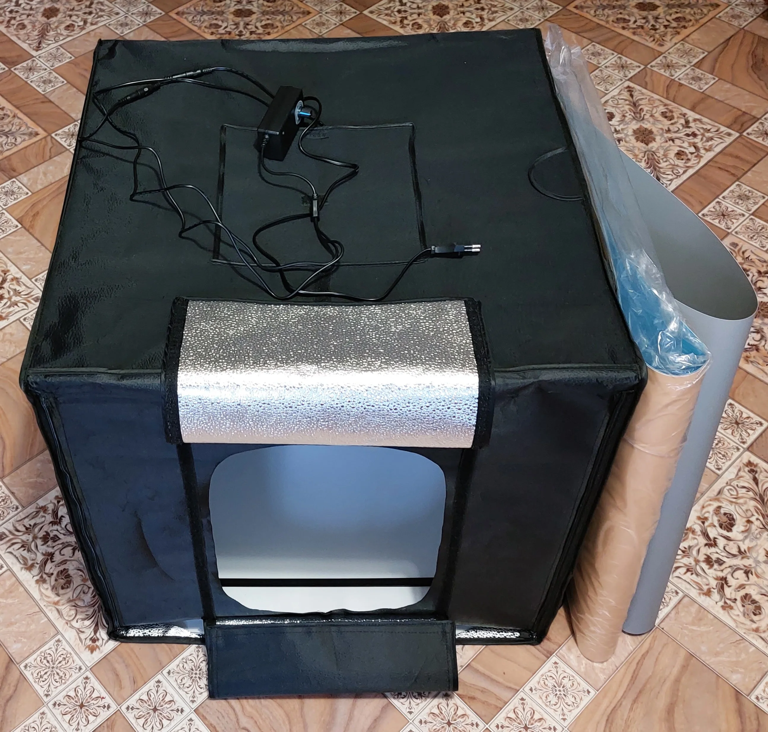 Я довольна коробом. Он действительно большой, пришлось повозиться, чтобы собрать и разобрать, но я привыкну. Фото в нём получаются качественные. Я вначале купила на 40 см, он собирается быстро, но мне не хватило размера для моих нужд. Удобно, что есть регулятор с розеткой, лампы светят ярко, я очень довольна. Ещё и со скидкой. Получила точно в срок
