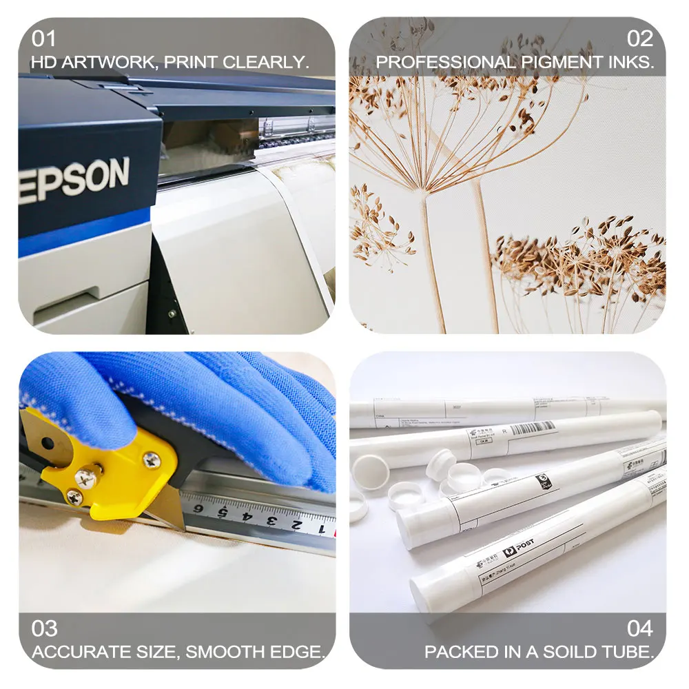 В целом хорошо выглядит, единственное, что золотой цвет на самом деле не золотой (он не блестит, как я думал при просмотре изображения), но он состоит из разных оттенков коричневого и бежевого, который виден на больших размерах, таких как 50х40. Поэтому я заказал меньший размер, который я теперь жду. Надеемся, что золотой принт будет меньше виден и выглядит естественно.