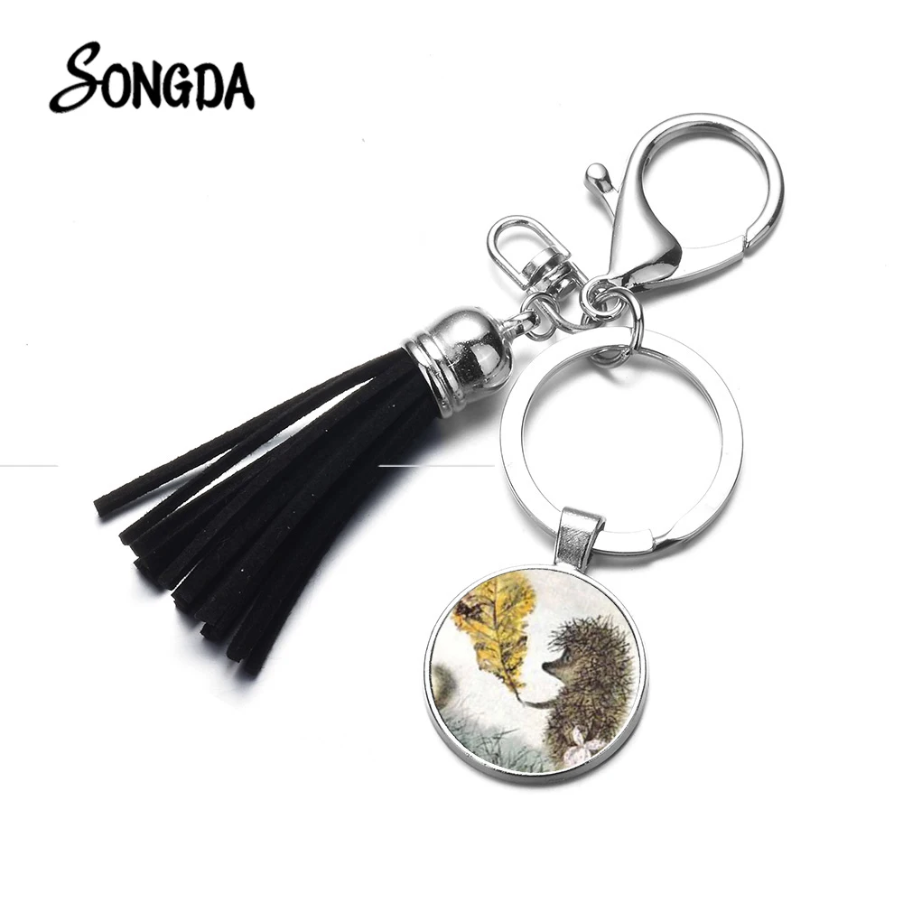 Новейшая модель; Ежик в тумане с кисточками Брелок чехол с изображением милых мультяшных животных Ежик художественные фотографии цепочка для ключей женские свадебные туфли ручной работы кольцо для ключей