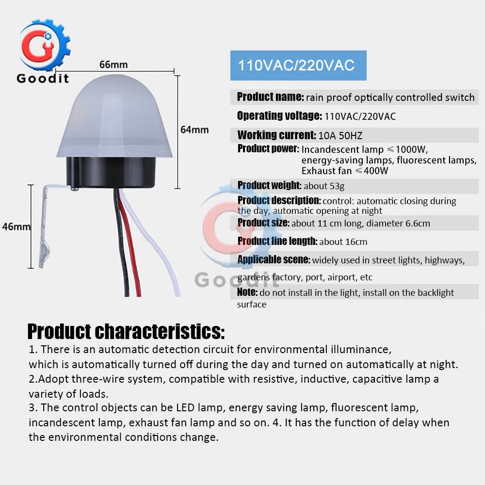 Водонепроницаемый чувствительный автоматический переключатель фотографий AS-20 DC 12 В AC 110 В 220 В 10A ВКЛ.ВЫКЛ. Фотоэлемент переключатель уличного света сенсорный переключатель инструменты