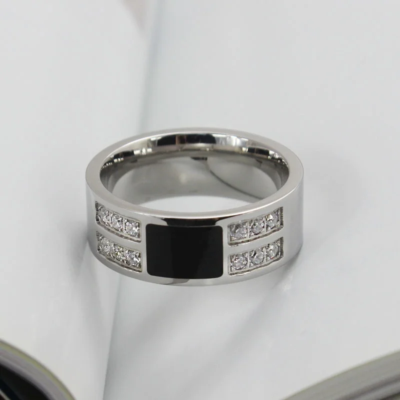 2-рядные черные кольца для мужчин и женщин из нержавеющей стали кла...