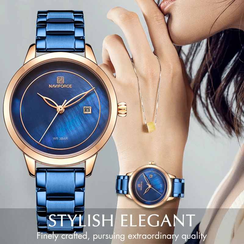NAVIFORCE часы для женщин Топ Бренд роскошные женские часы из нержавеющей стали простые женские часы синие кварцевые наручные часы Reloj Mujer