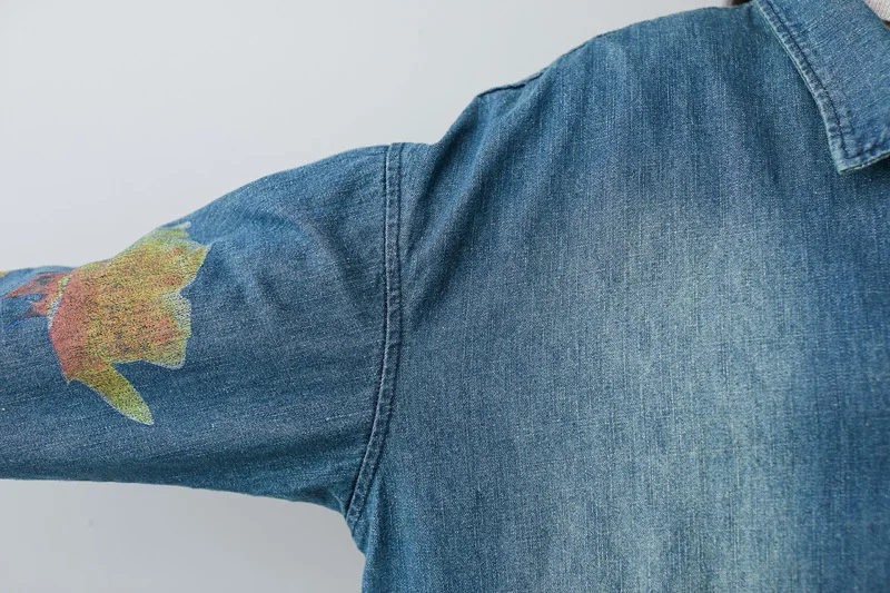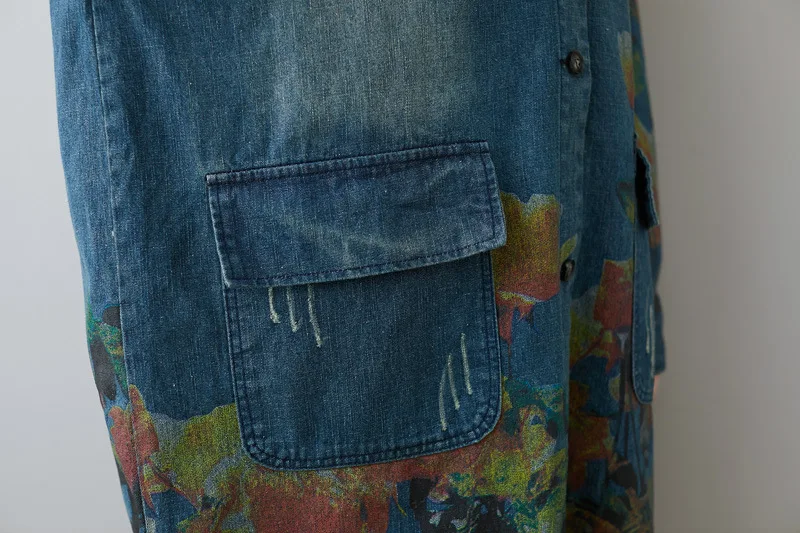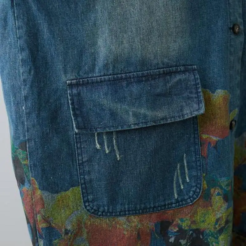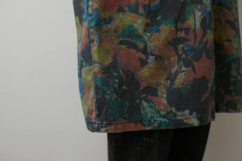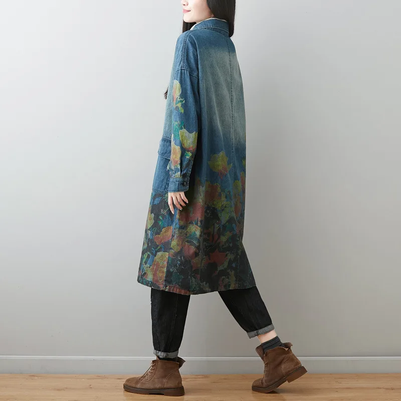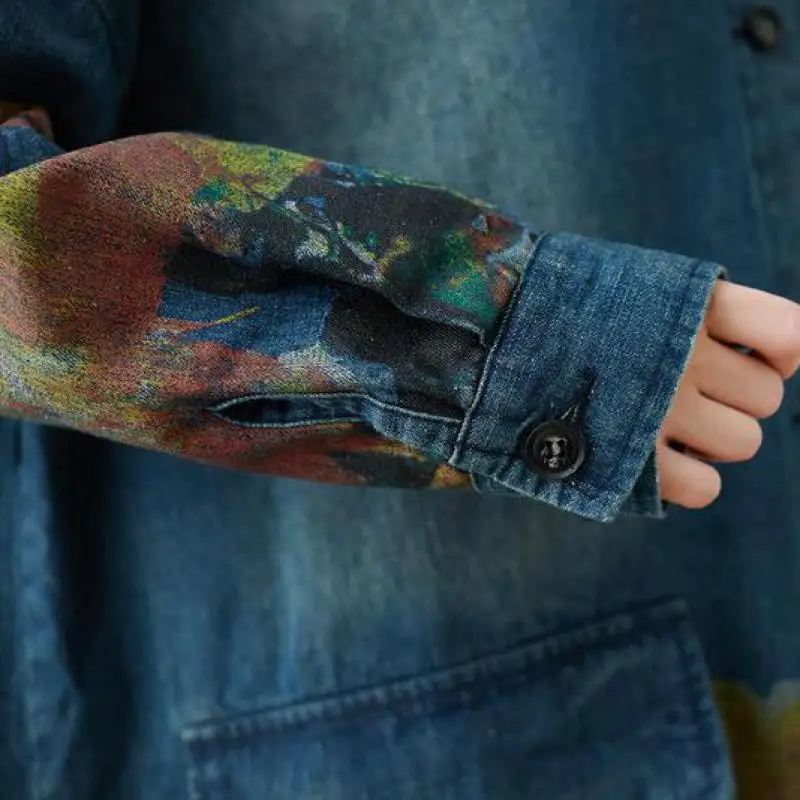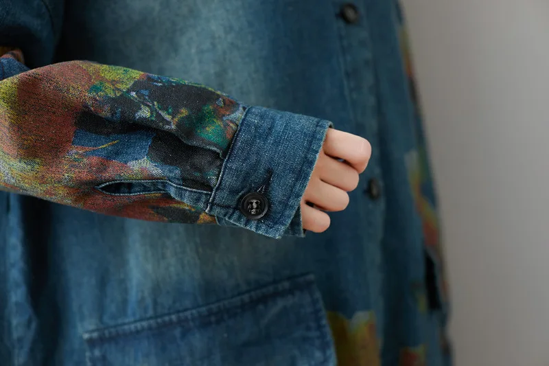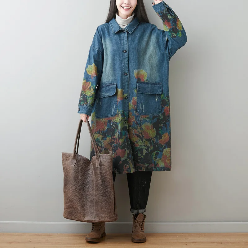 Женское джинсовое пальто Johnature, осенне-зимнее пальто в стиле ретро с отложным воротником и цветочным принтом, новинка 2021, ветровка с длинными рукавами и карманами