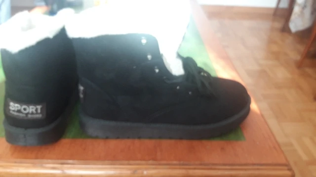 Получил быстро! Как на фото. Хорошо законченный и удобный для ношения с мехом внутри. Будьте осторожны, чтобы взять размер выше, потому что мне 40 лет, и я взял 41, и он подходит мне! Небольшие царапины внизу, которые очень хороши, чтобы не скользить.