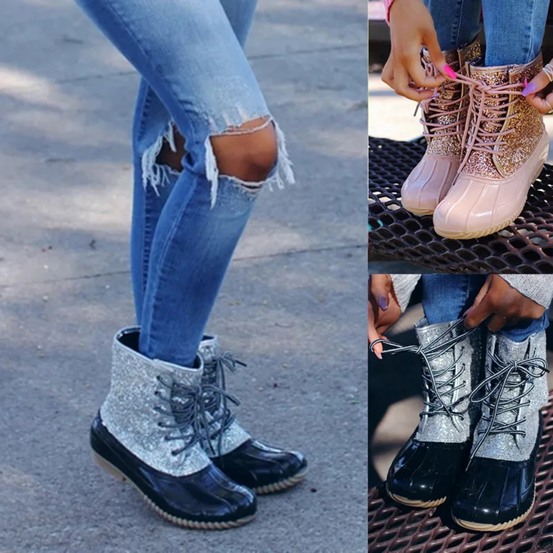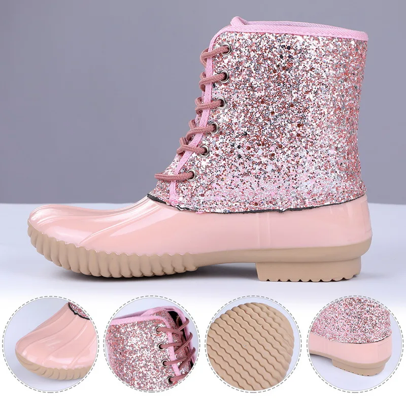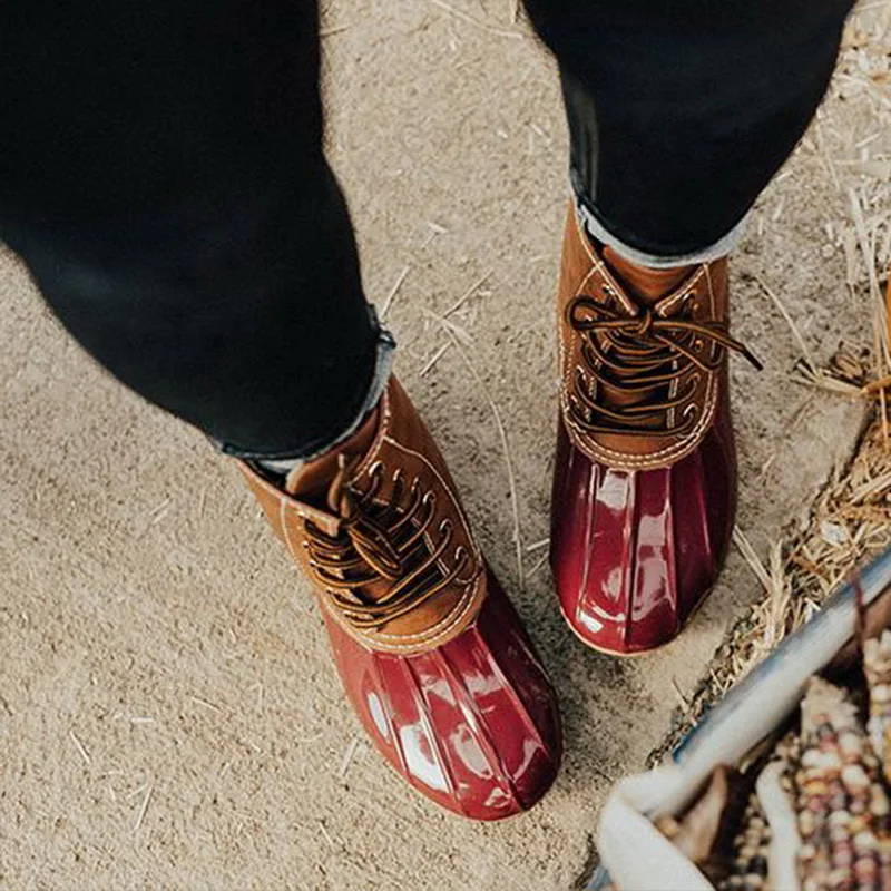 Женские непромокаемые сапоги до середины голени на шнуровке, на зиму и Рождество, 2019
