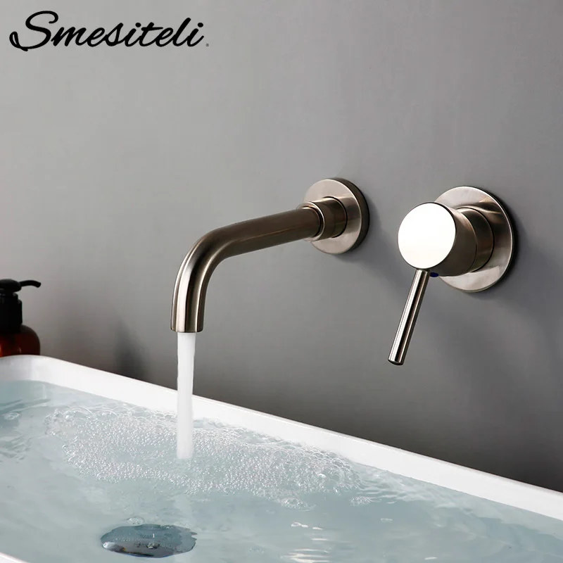 Смеситель для раковины Smesiteli, латунный, для горячей и холодной воды, с двойным отверстием, с одной ручкой