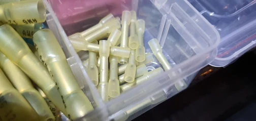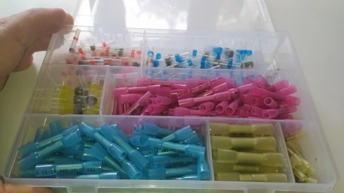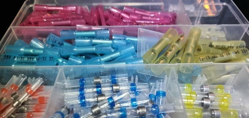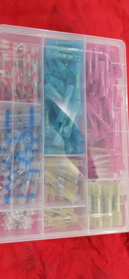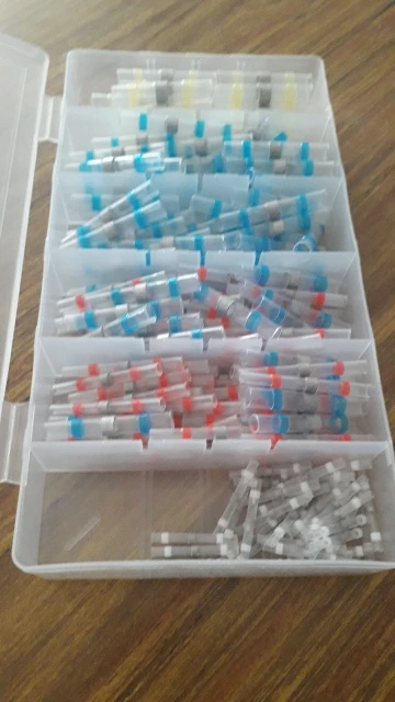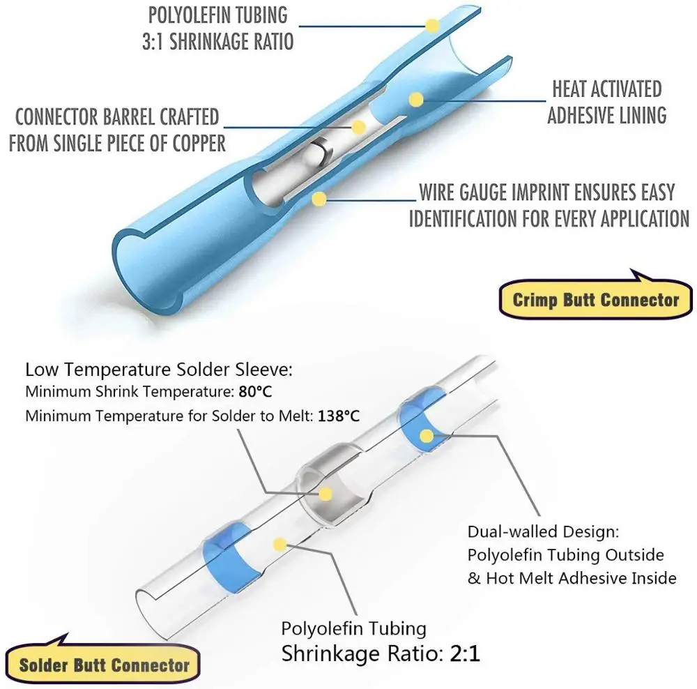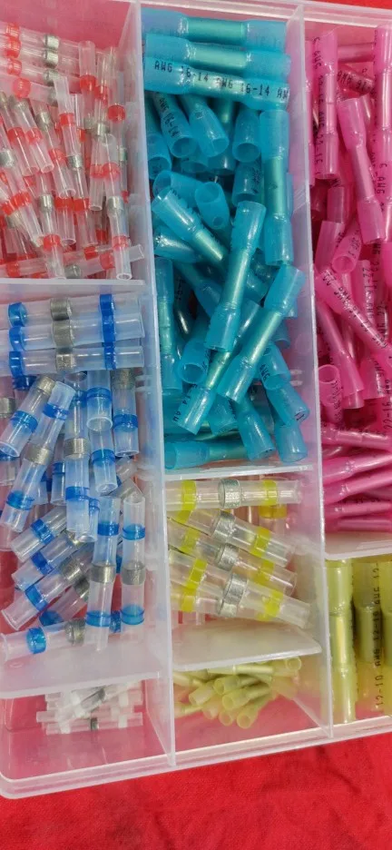 Обжимные соединители хорошие Металл не ахти толстый, обжимаются подозрительно легко, но держат, зато термоусадка с клеевой основой норм, не подгорает, усаживается хорошо, клея достаточно. Те, что с припоем, еще не пробовал, но обжимные буду еще брать точно