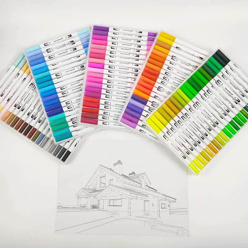 Товары Название:12/24/36/60/72/100/120 Цвета ручки с кисточками с тонкой лайнер наконечник 0,4, двойной наконечник ручки-маркеры чернила на водной основе для рисования