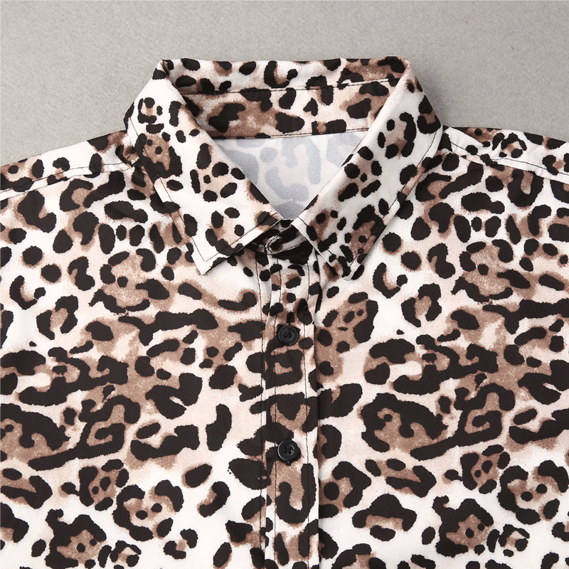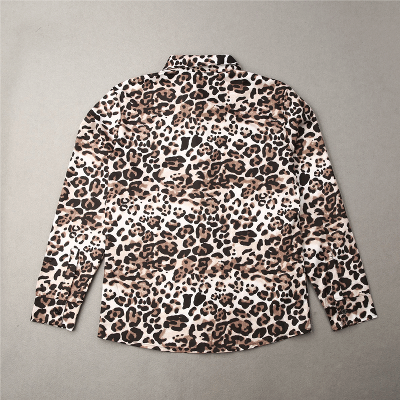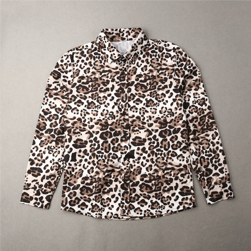 Модная мужская Повседневная рубашка с длинным рукавом и отложным воротником с леопардовым принтом, повседневные облегающие стильные рубашки, мужские топы