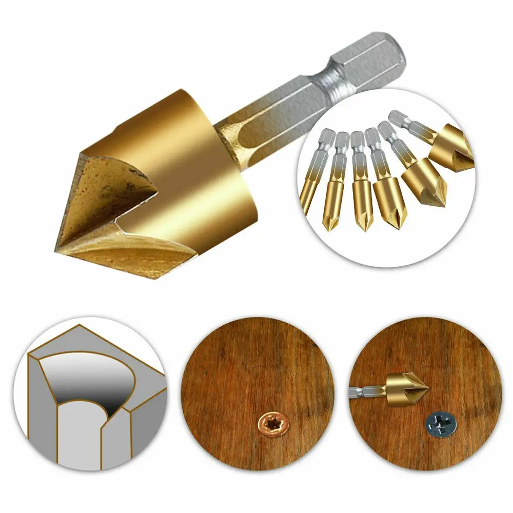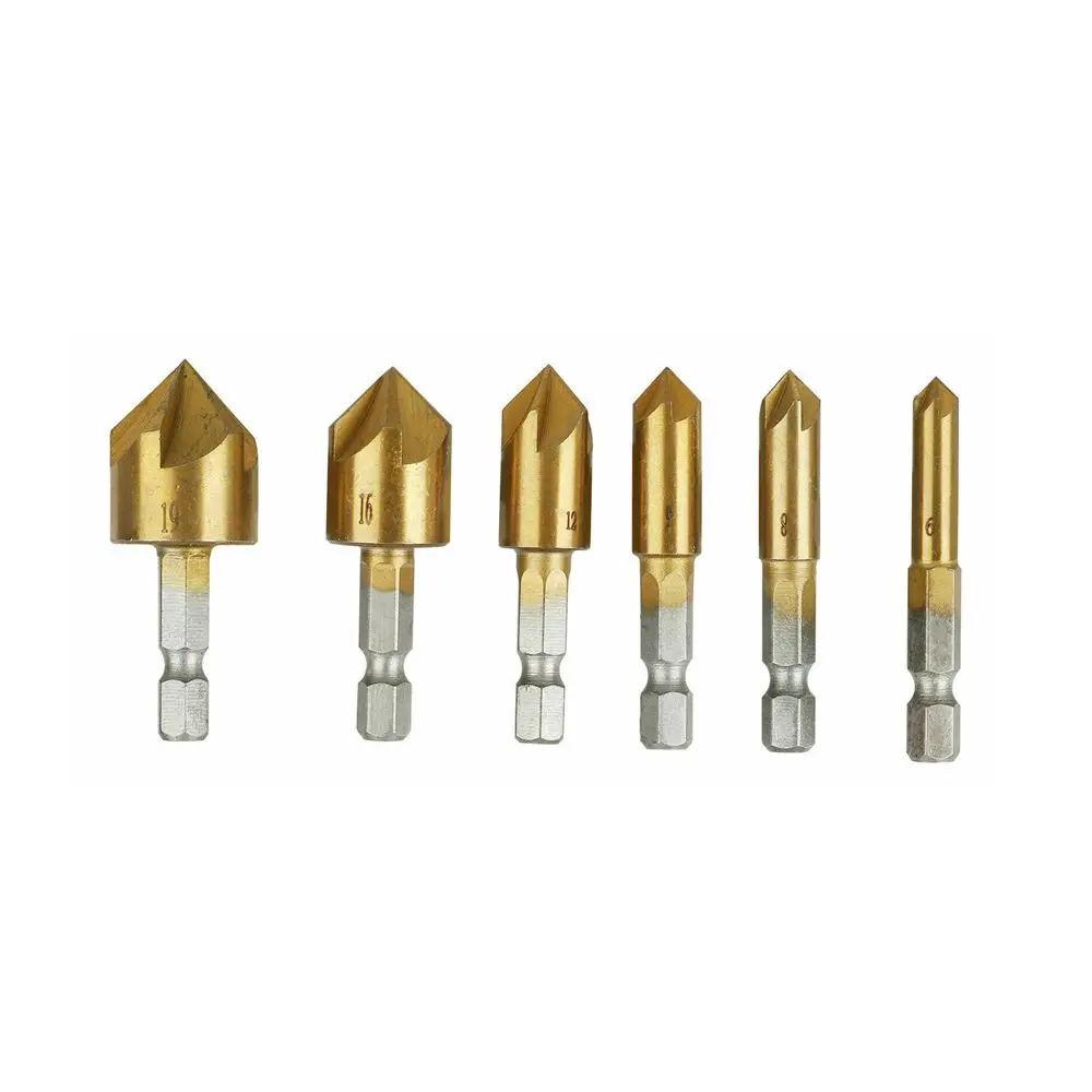 6 шт. 5 флейт зенковки набор сверл 90 градусов счетчик раковины фаски Резак 14 ''6 мм 8 мм 9 мм 12 мм 16 мм 19 мм