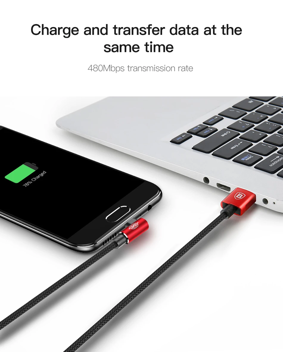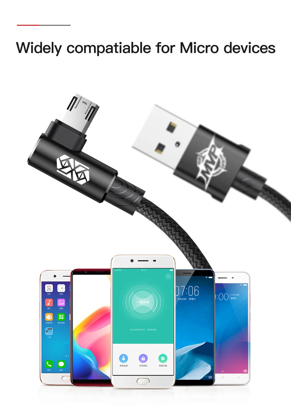 Кабель Micro USB Baseus для быстрой зарядки и передачи данных, 90 градусов, мобильный телефон шнур для Samsung, Xiaomi, Huawei, 2 м