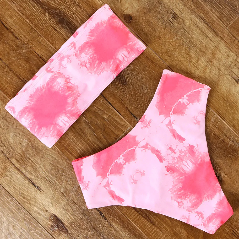 2020 сексуальное бикини, женский купальник с открытыми плечами, купальник-бандо, купальник с высокой талией, окрашенный бикини пуш-ап 2019, женское бикини