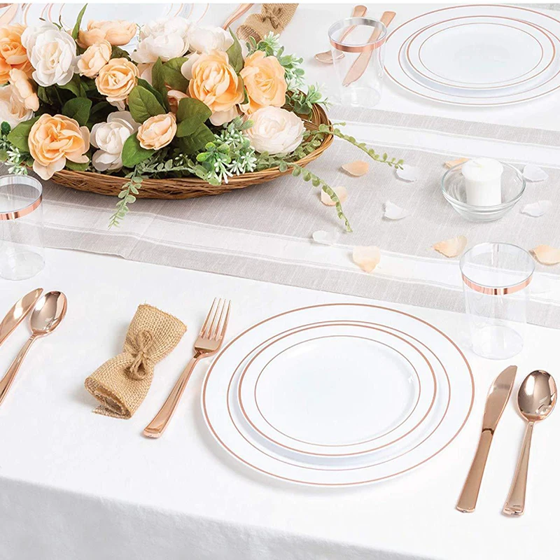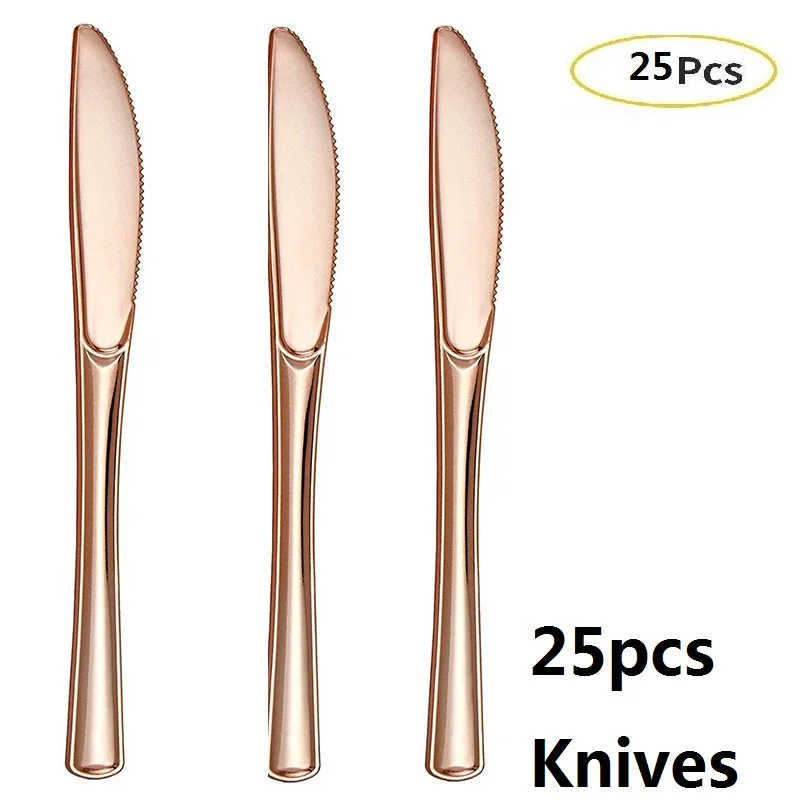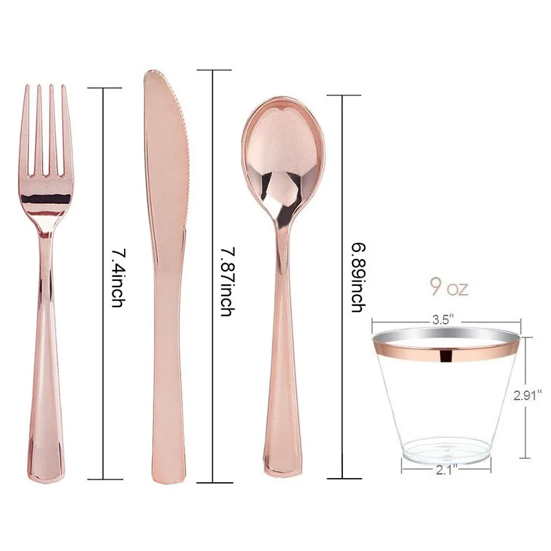 25-100 шт Розовое золото набор посуды одноразовые оправы Пластик столовые приборы, ложки, вилки, ножи кофейные чашки, на вынос бумажные кофейные чашки одежда для свадьбы, дня рождения украшения