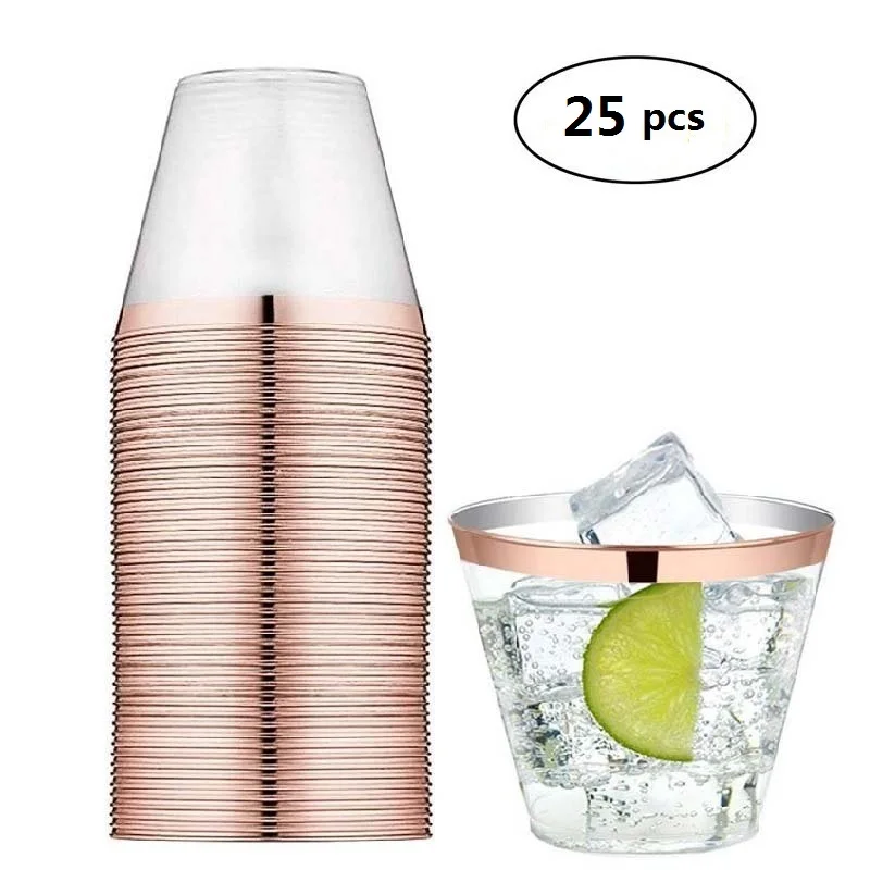 25-100 шт одноразовые пластиковые вилки, ложки, ножи, чашки для напитков, розовое золото, набор посуды, свадебные украшения для дома, рождественский подарок, Рождественская вечеринка, посуда