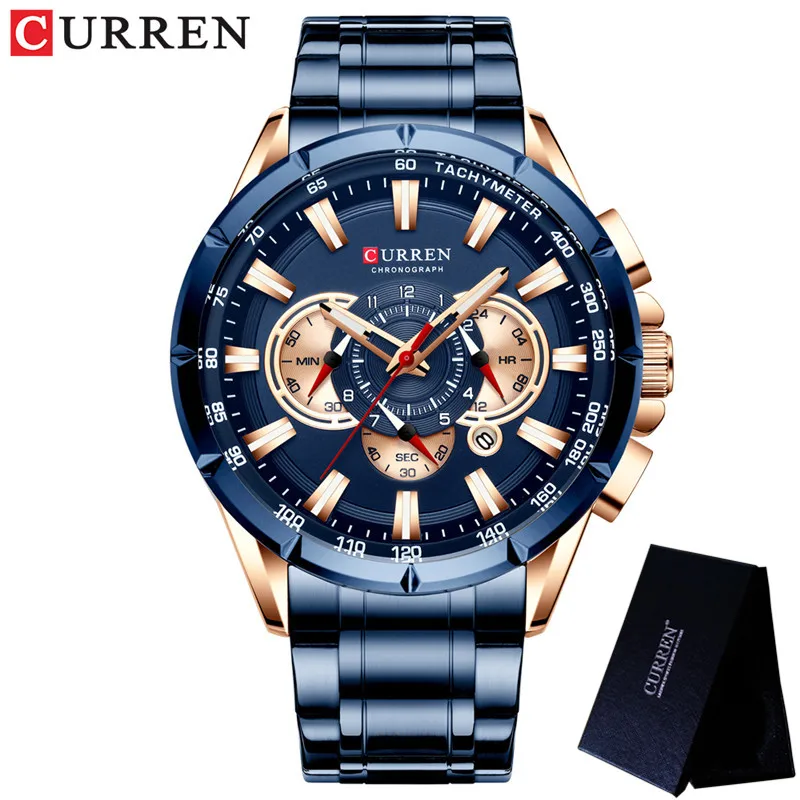 Часы Мужские CURREN, из нержавеющей стали, водонепроницаемые, с хро...