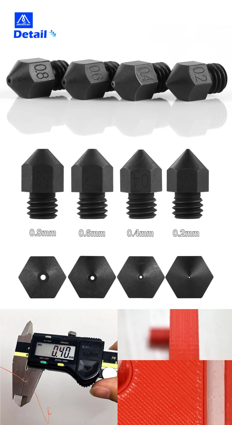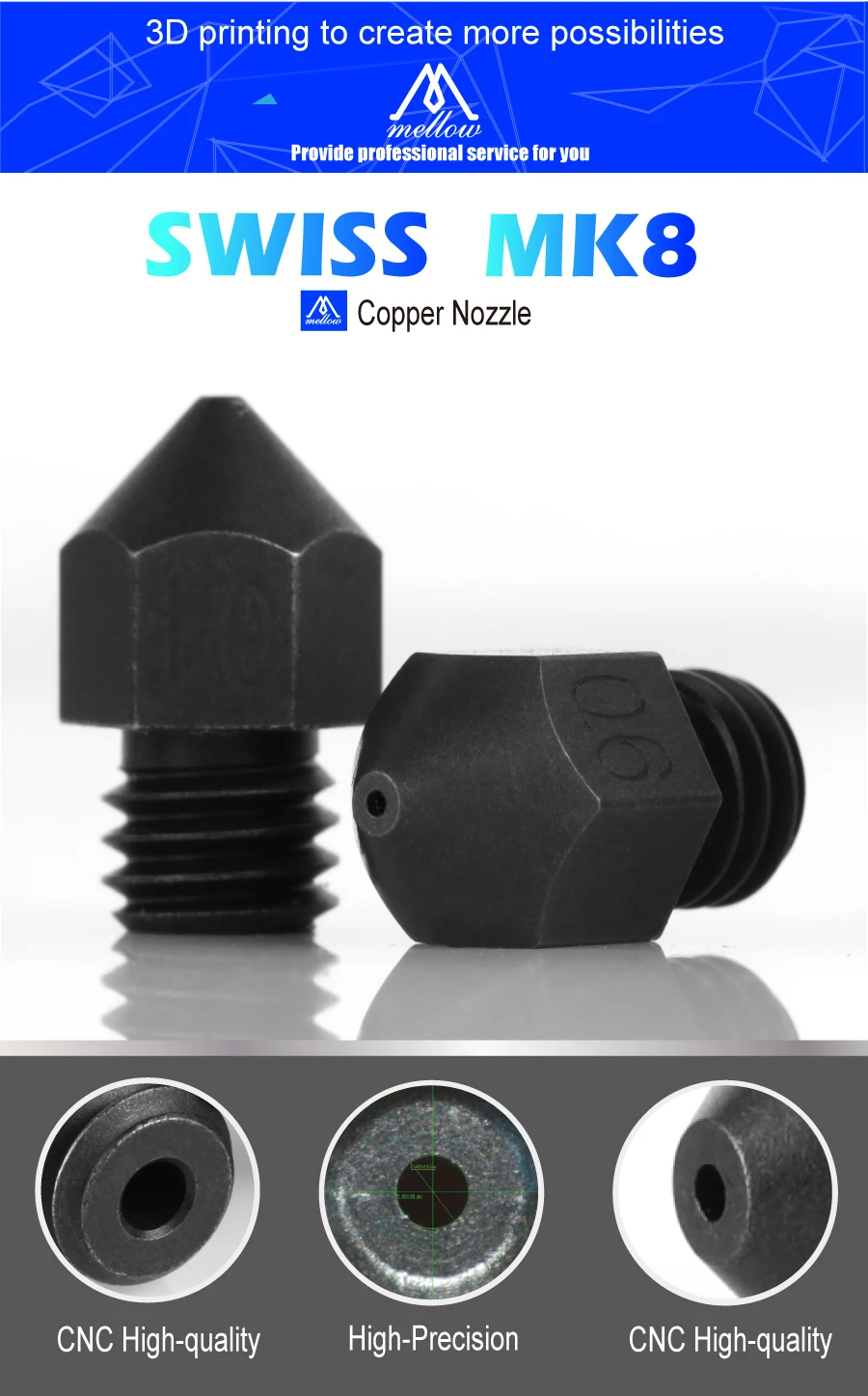 Насадка швейцарская MK8 из закаленной стали, Резьба M6, Филамент 1,75 мм для 3D принтера Cr10 Ender 3, углеродное волокно с принтом Hotend