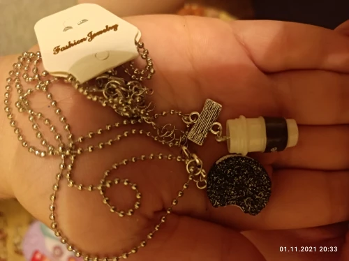кулон милый, цепочка как на фото. в реальности цвет не бирюзовый, а скорее зелёный. пришёл быстро вместе с другими посылками.