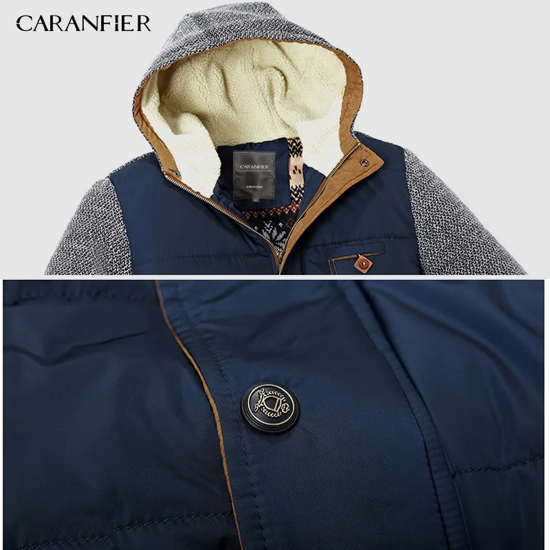 Новая зимняя куртка CARANFIER, мужская повседневная верхняя одежда, утепленная парка с капюшоном из ягненка, Мужская модная Толстая теплая куртка в стиле пэчворк