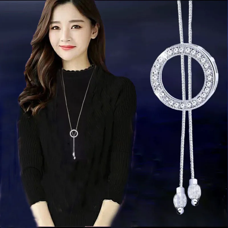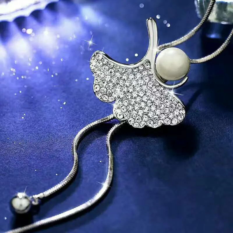 Цепочка с подвесками Женская, длинное ожерелье серебряного цвета с искусственным жемчугом и кристаллами, колье с узором в виде листика, ювелирные аксессуары, 2021