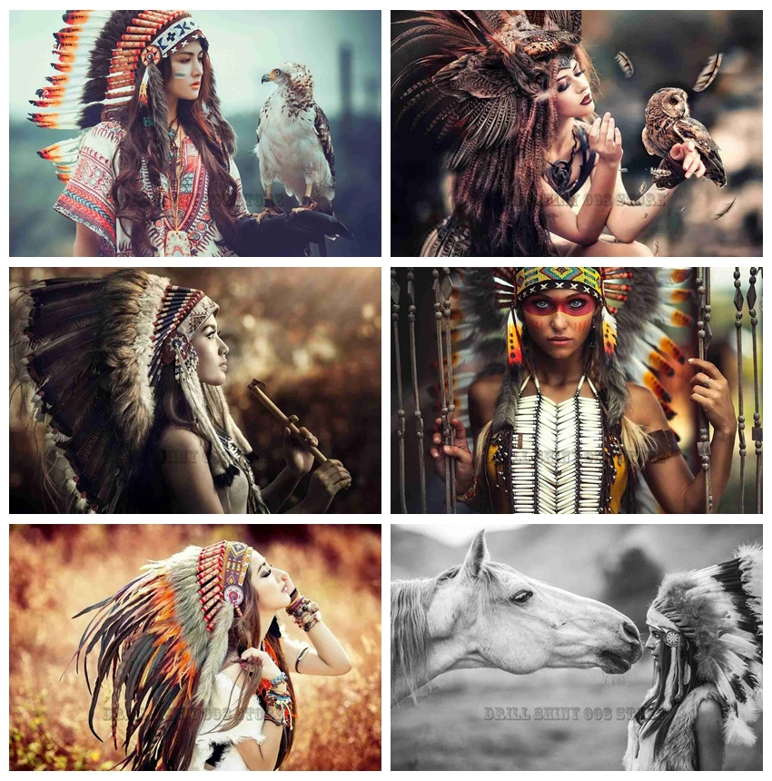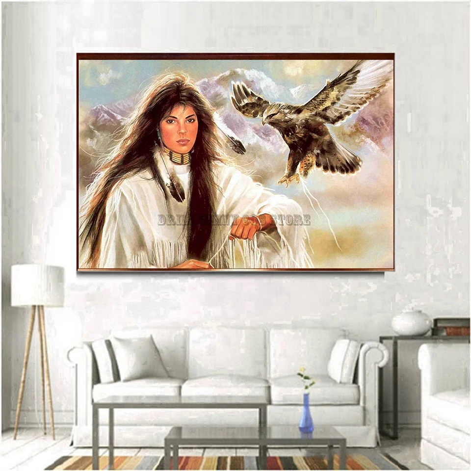Алмазная картина 5D "сделай сам", девушка-индеец, красавица, алмазная вышивка крестиком, мозаика для дома, рождественский подарок