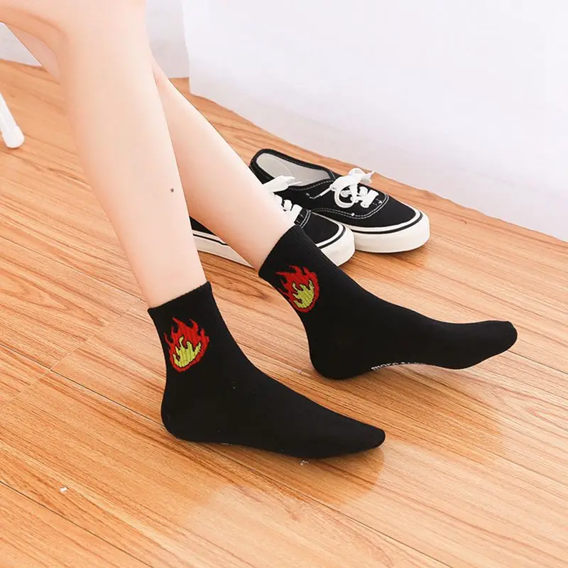 1 пара Смешные хип-хоп Оригинальные дома скейтборд пламя мультфильм индивидуальные носки все хлопковые осенне-зимние новые носки средней длины