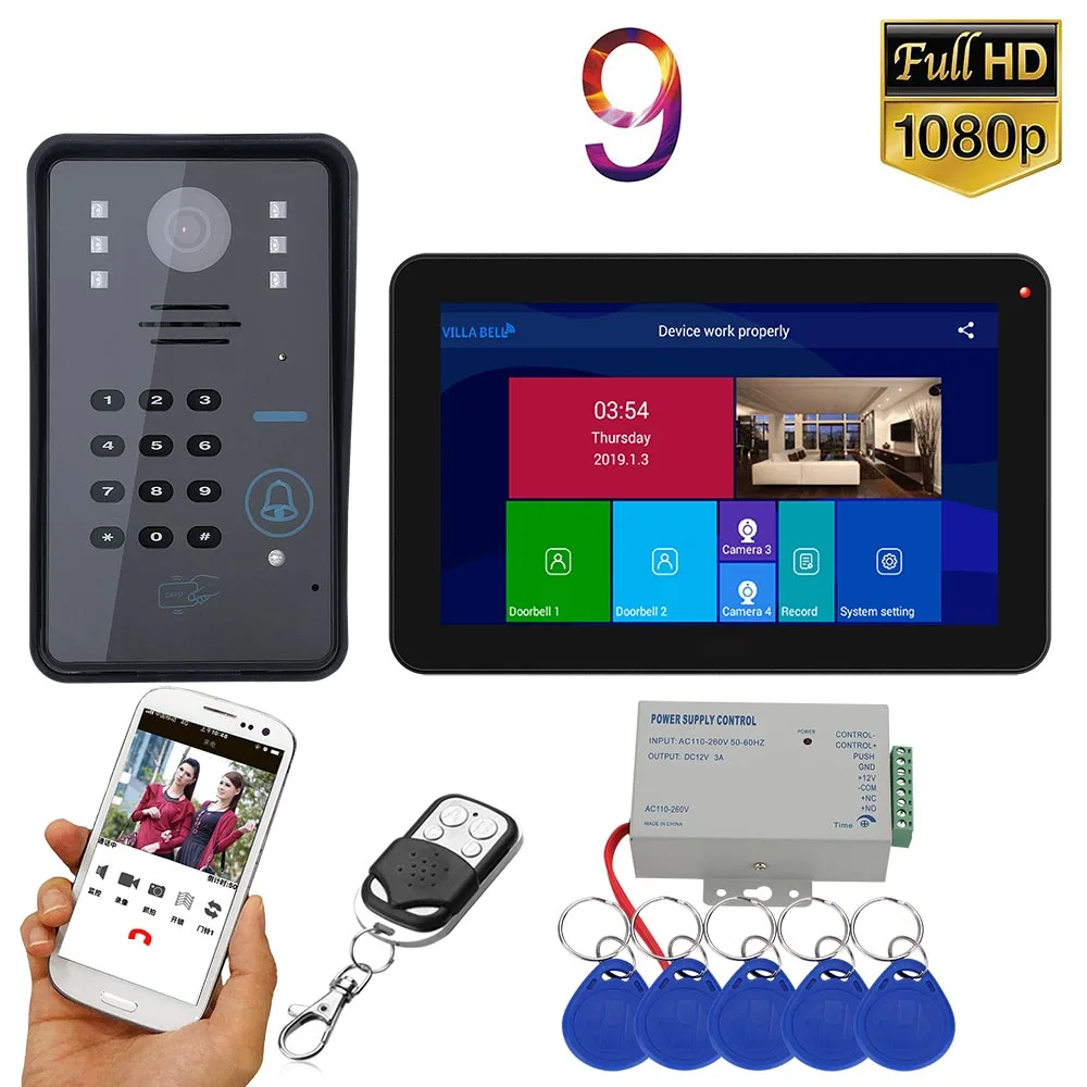 9-дюймовый 2 монитора Беспроводной Wi-Fi RFID пароль видео дверной звонок Домофон система входа с проводной камерой IR-CUT 1080P ночное видение, поддержка удаленной разблокировки, записи, снимка