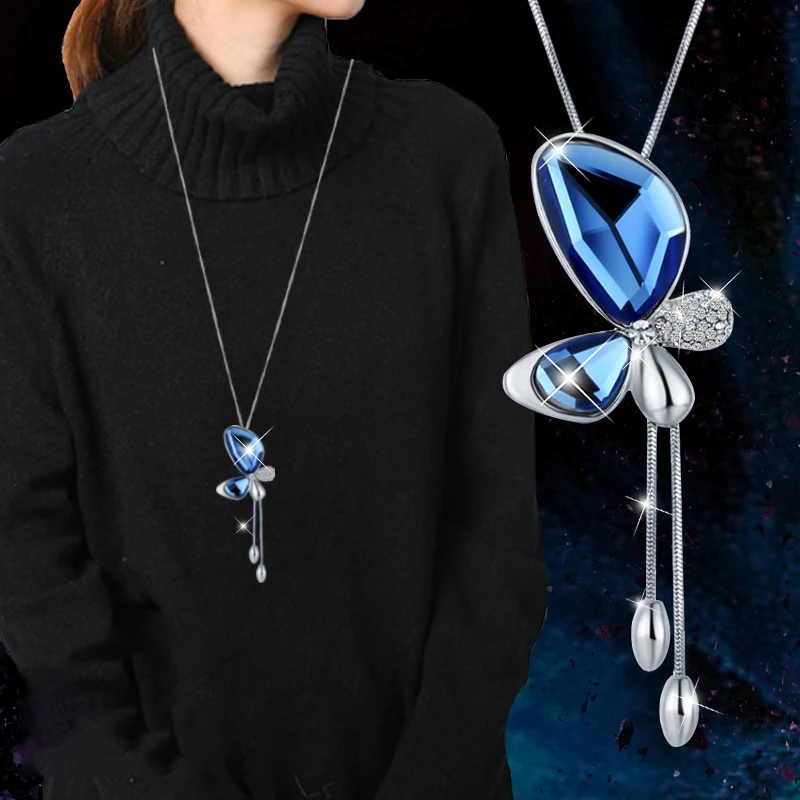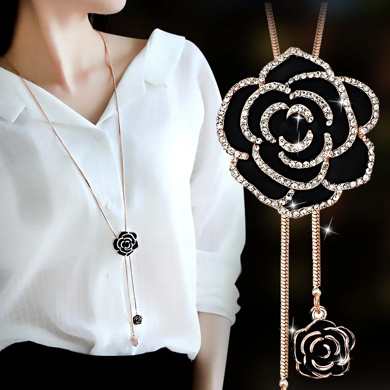 Женское длинное ожерелье с подвеской в виде цветка розы, цепочка для свитера, подарочное Ювелирное Украшение, 2021