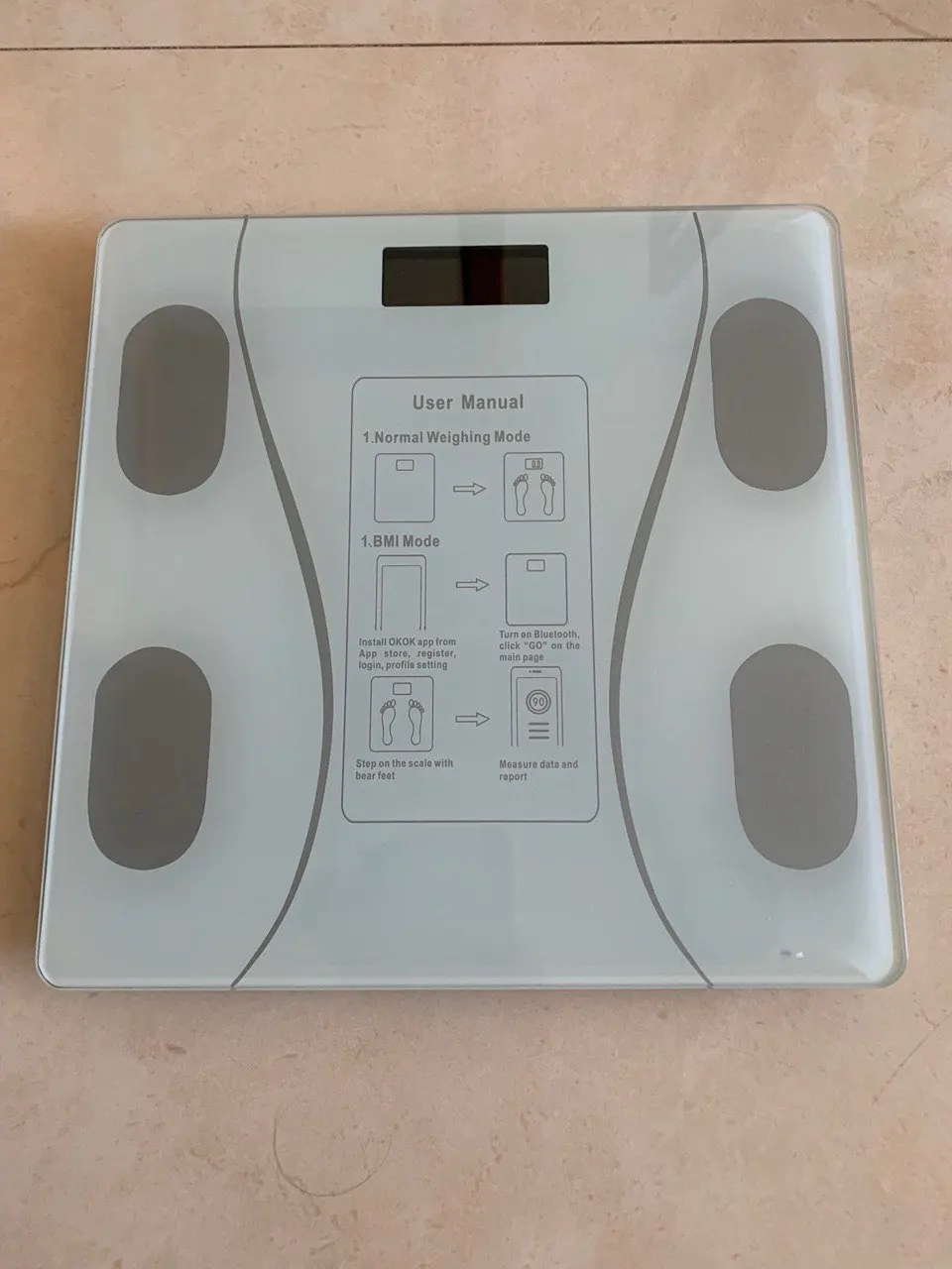 Дошло за 28 дней до Нур-Султана. Упаковано хорошо, всё целое без дефектов. Выглядит как на фото, качество хорошее. Поставили приложение для айфона, показывает различные параметры исходя из возраста, веса и роста. Батареек ААА две штуки нужно, в комплекте их нет.