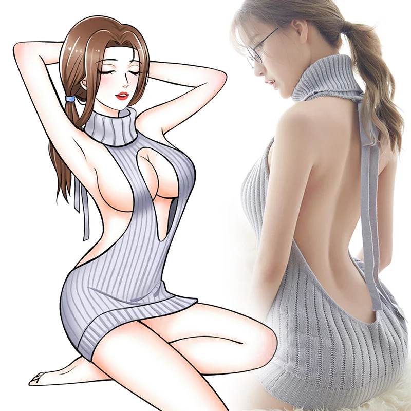 Женская сексуальная свитер без спинки водолазка с открытой грудью, ...