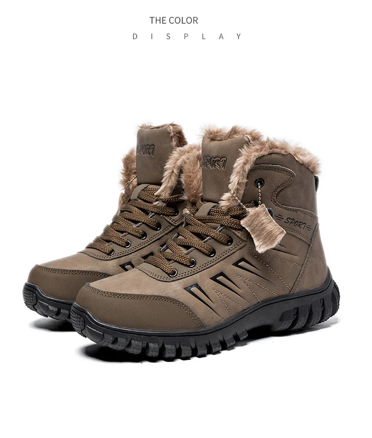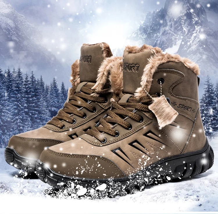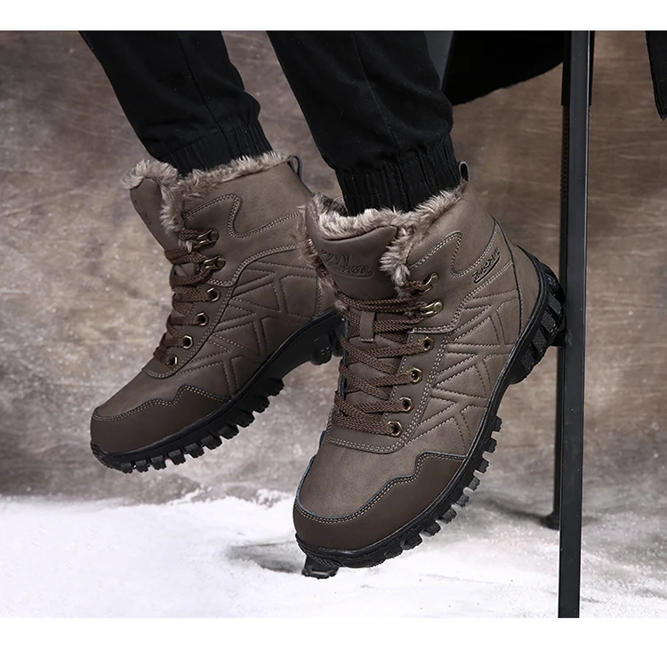 Мужские кожаные ботинки, зимние теплые ботинки с плюшевым верхом, уличные кроссовки, мужская водонепроницаемая обувь, дезерты