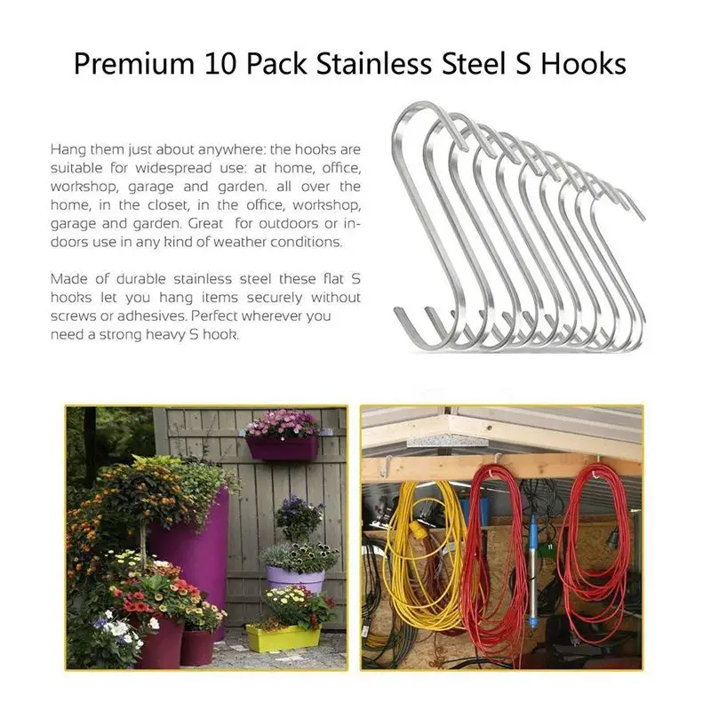 BMBY-набор из 10 подвесных крючков из нержавеющей стали для кухонной посуды или мяса мясника