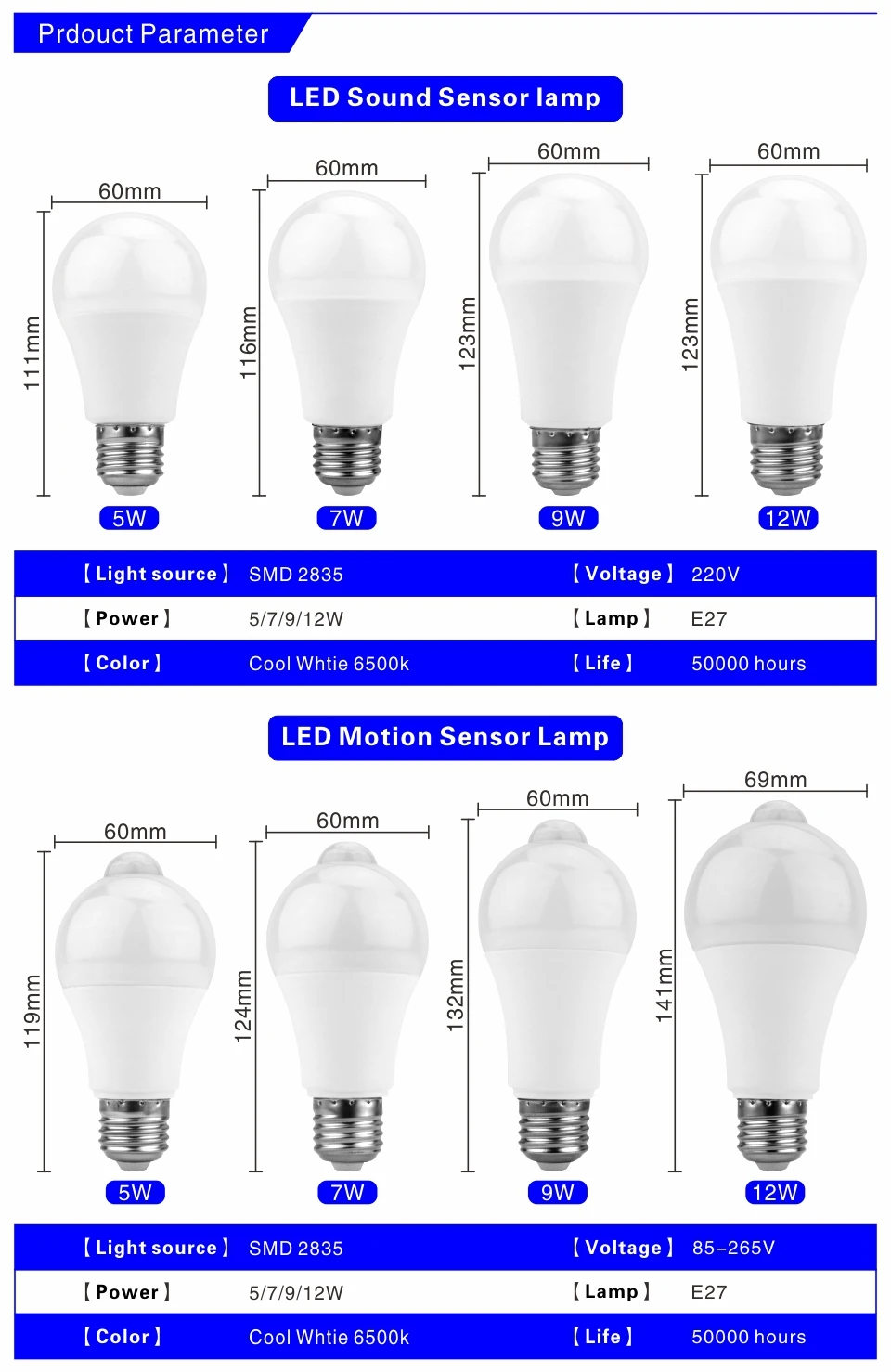 Светодиодный ная лампа с датчиком движения 5 Вт, 7 Вт, 9 Вт, 12 Вт, лампа с датчиком звука AC 110 В, 220 В, автоматическая умсветодиодный инфракрасная лампа с инфракрасным корпусом E27