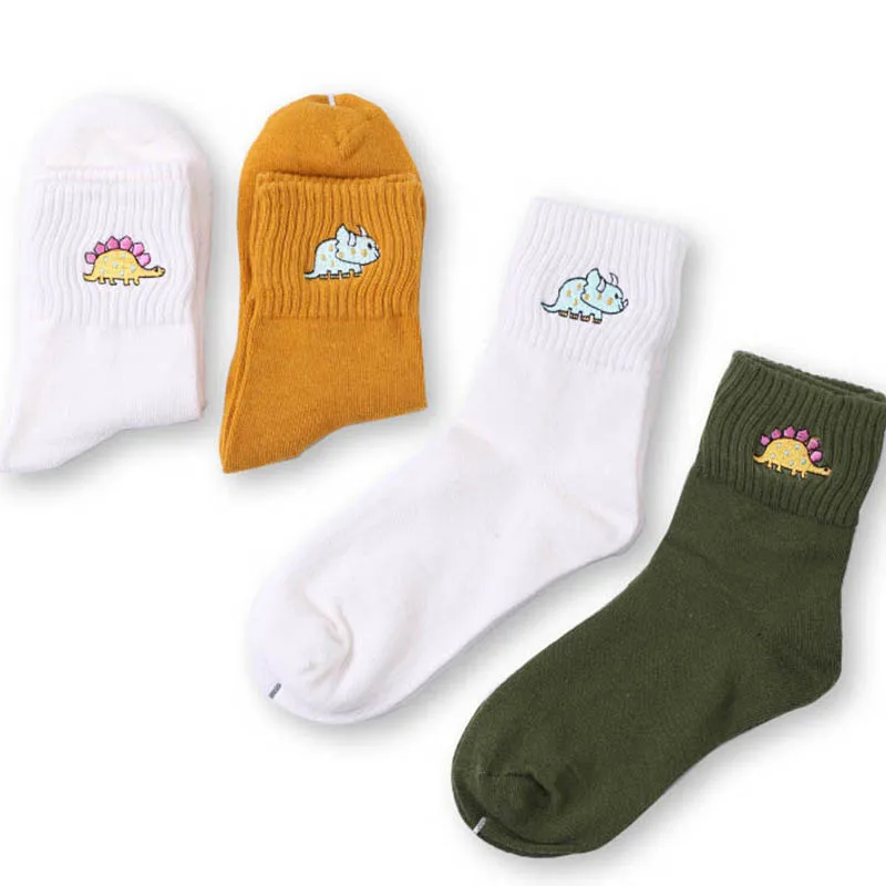 Модные милые Креативные Хлопковые женские носки с вышивкой динозавр...