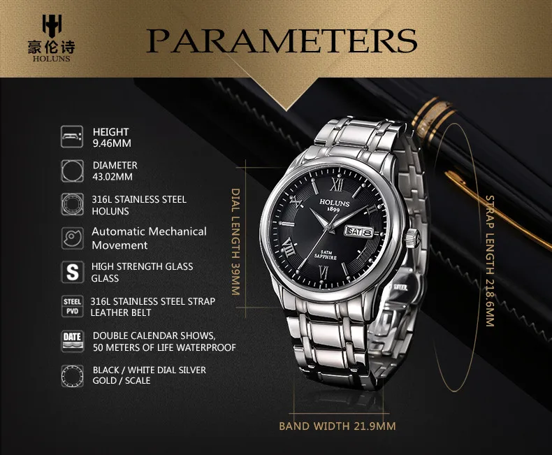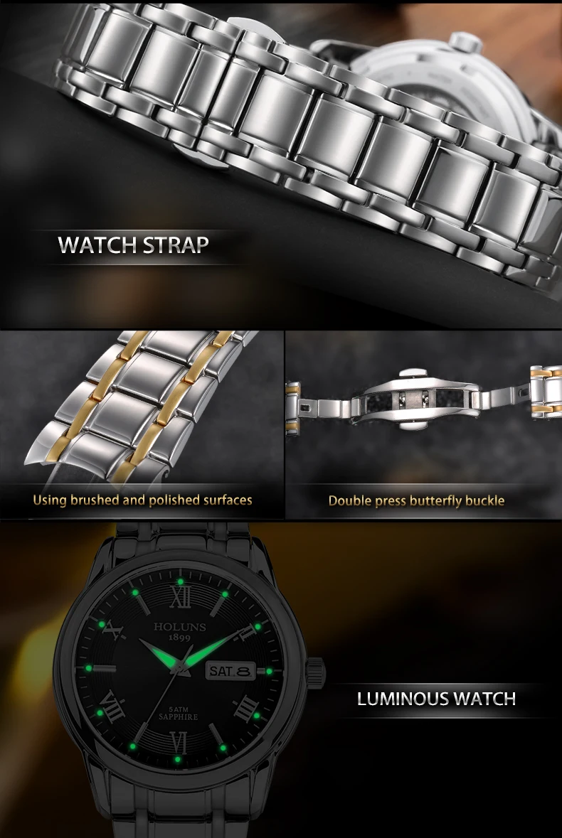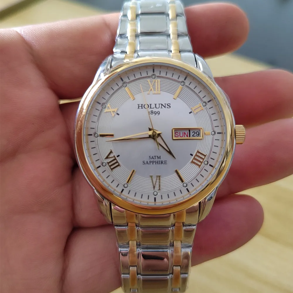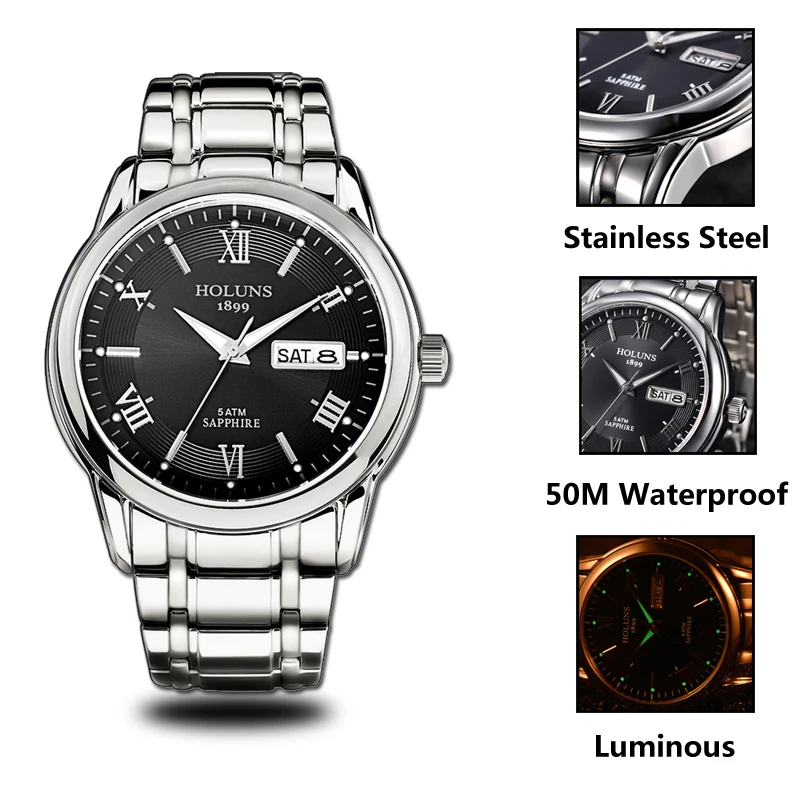 Мужские часы HOLUNS relogio masculino полностью из нержавеющей стали Мужские автоматические часы топовый бренд Роскошные 5ATM водонепроницаемые Супер Светящиеся Прямая поставка