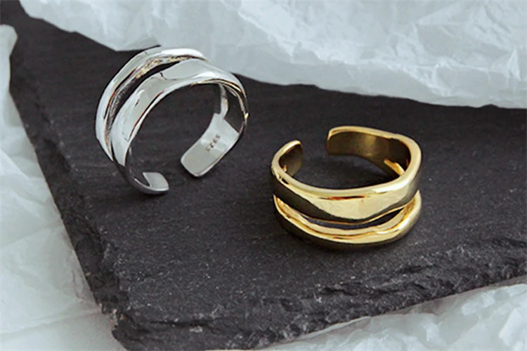 2 цвета, золотые и серебряные классические простые регулируемые Открытые Кольца из чистого серебра 925 пробы