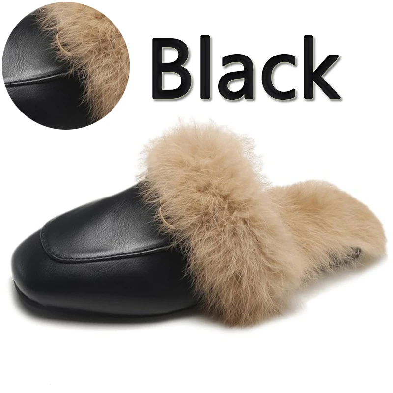 Шлепанцы Aphixta женские зимние, натуральный мех, тапки, бахрома, сланцы, теплые, пчела, большие размеры 44
