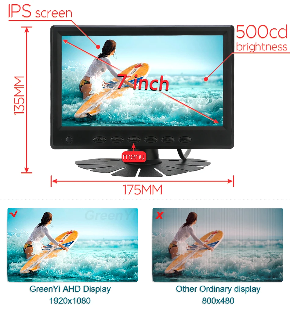 HD 7 дюймов 1024x60 0 IPS экран грузовик прицеп автобус AHD монитор парковки с 1080P обратного резервного копирования заднего вида AHD камера