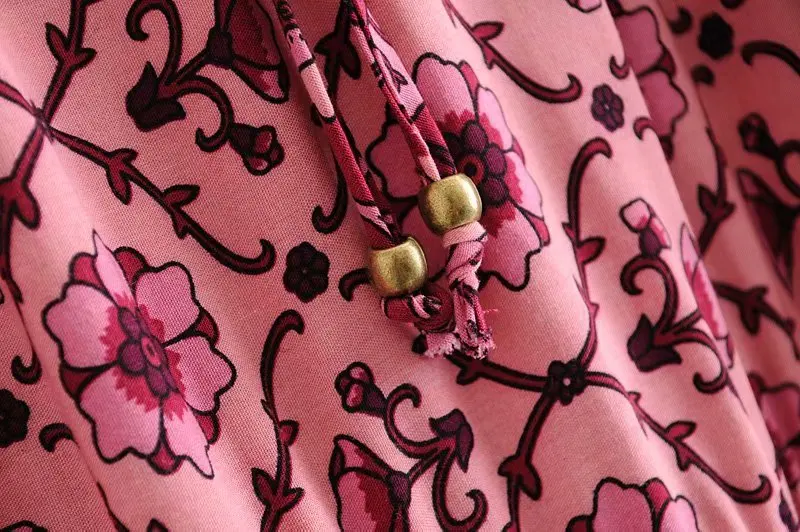 Блузка женская в стиле бохо, Винтажный Розовый Топ с цветочным прин...