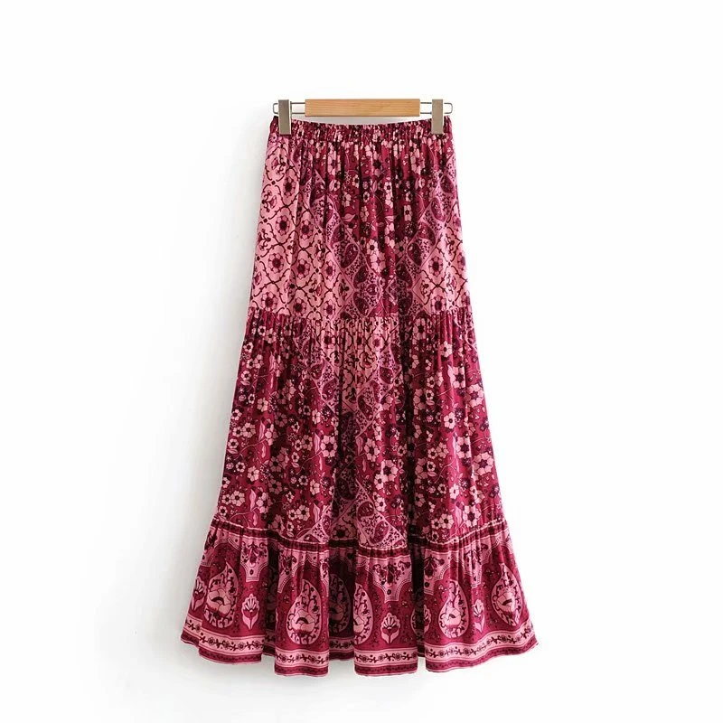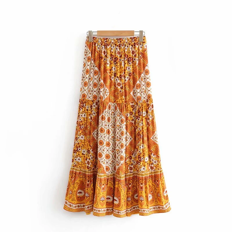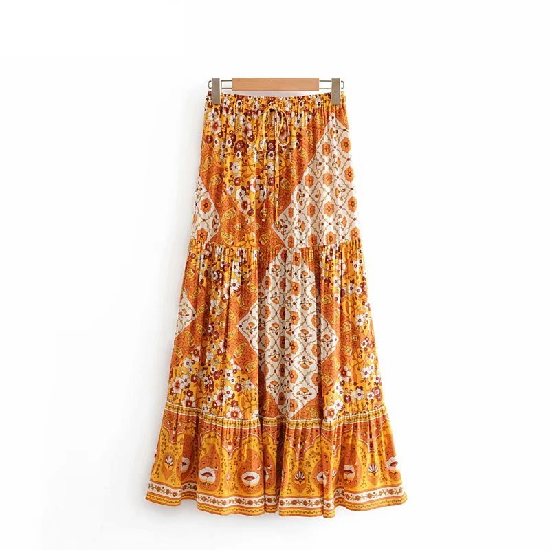 Винтажная шикарная Женская юбка в стиле хиппи с цветочным принтом и...