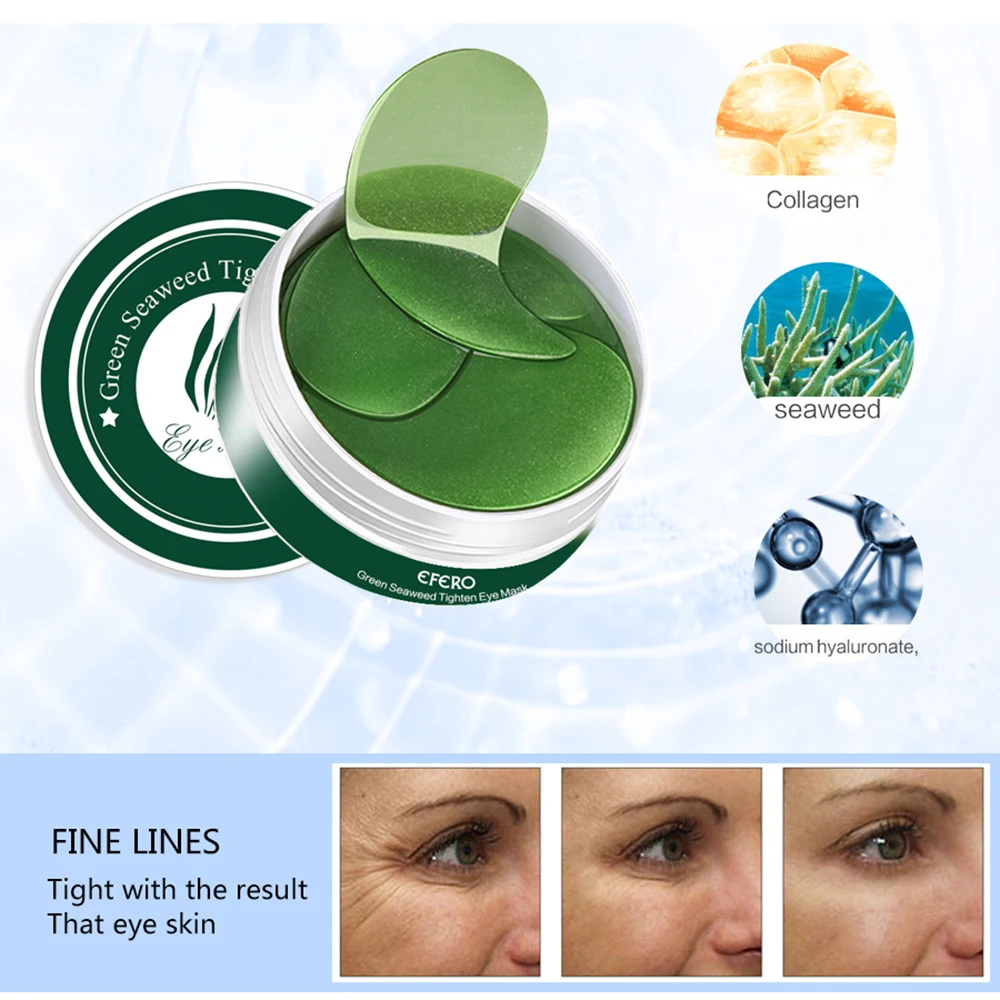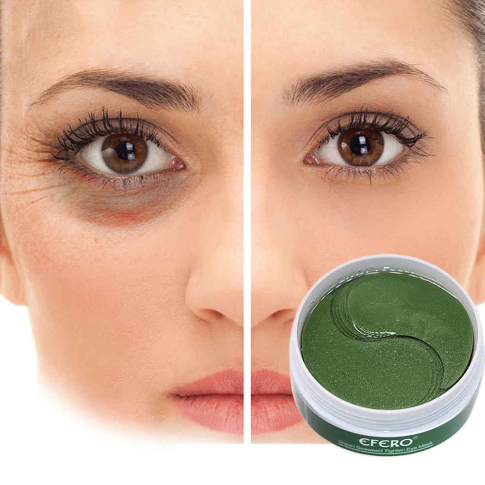 60 шт зеленые водоросли маска isilandon для глаз с коллагеном, гелевые подушечки под против мешков под глазами, темных кругов возле глаз, подушечки для глаз против морщин мешков под глазами, жидкость для снятия гель патчи