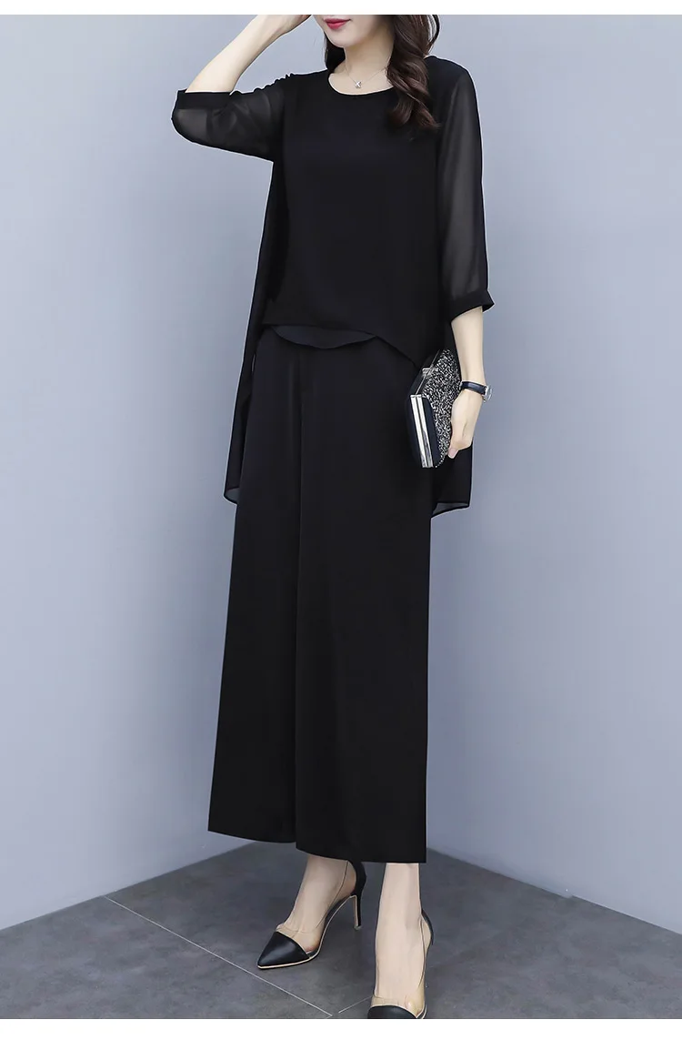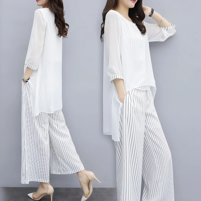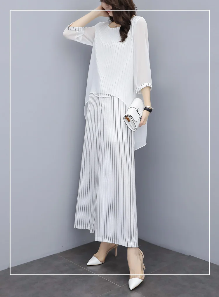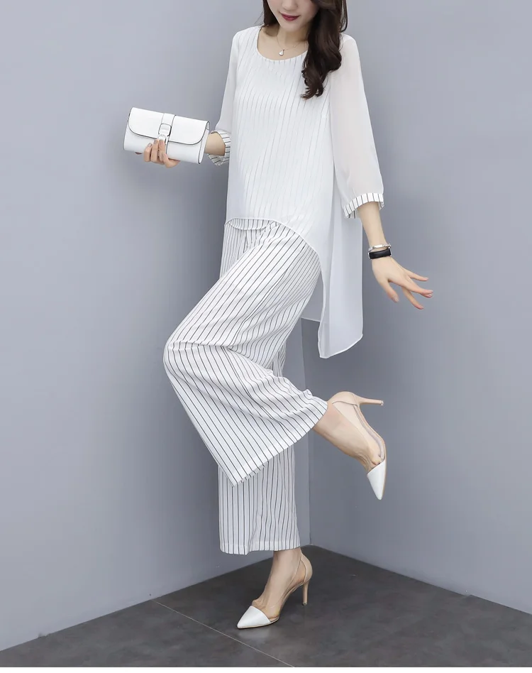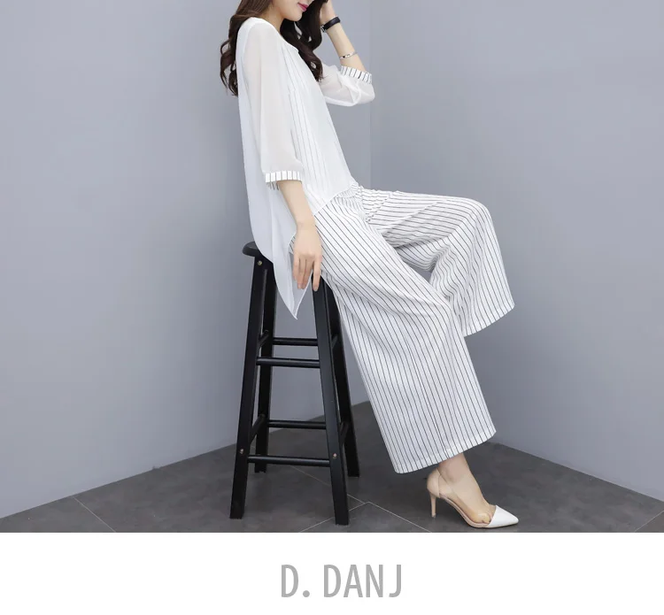 Шифоновые брючные костюмы, женские брючные костюмы для матери наряд для невесты, 2019, строгие, свадебные, полосатые, широкие, свободные, комплекты из 3 предметов