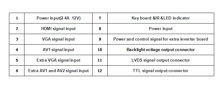 1 × HDMIVGA 2AVПлата аудио ЖК-контроллера