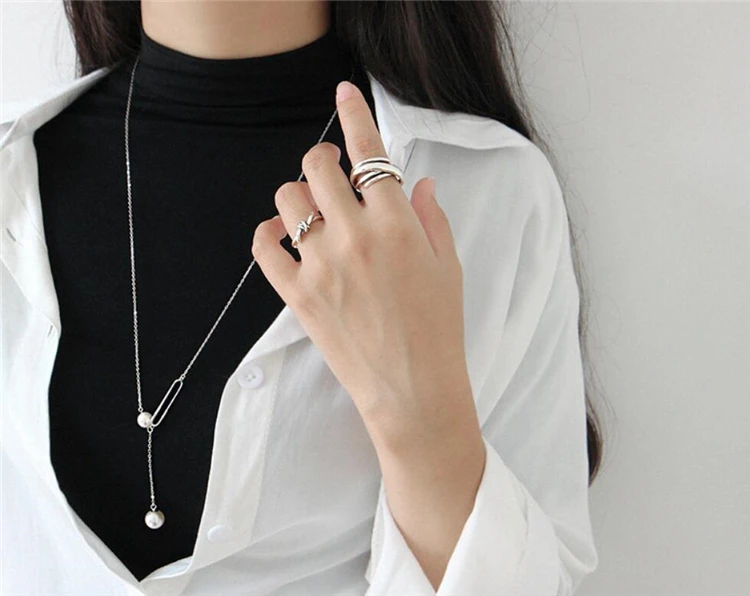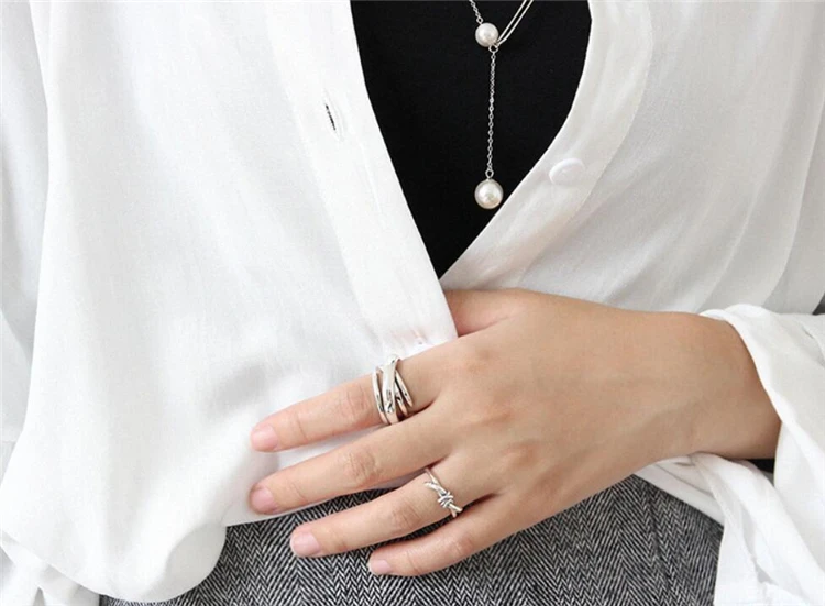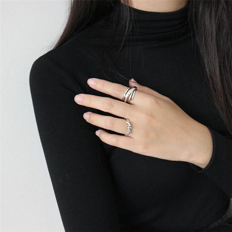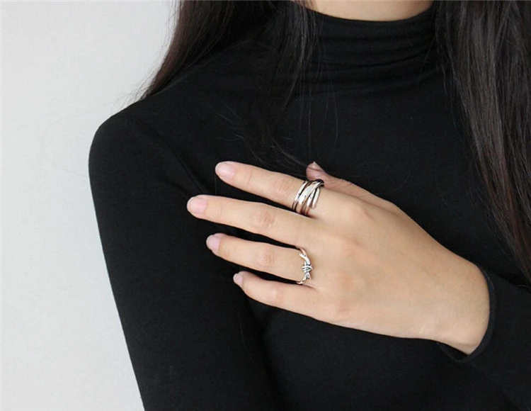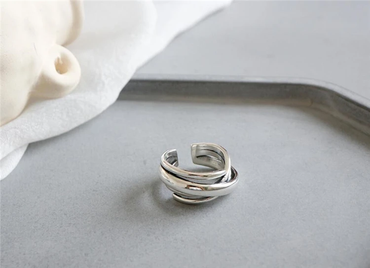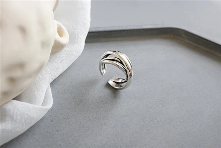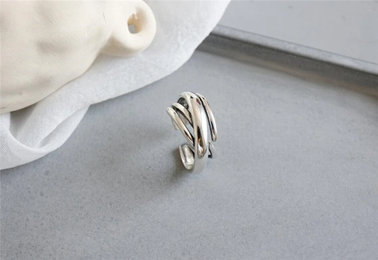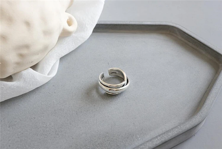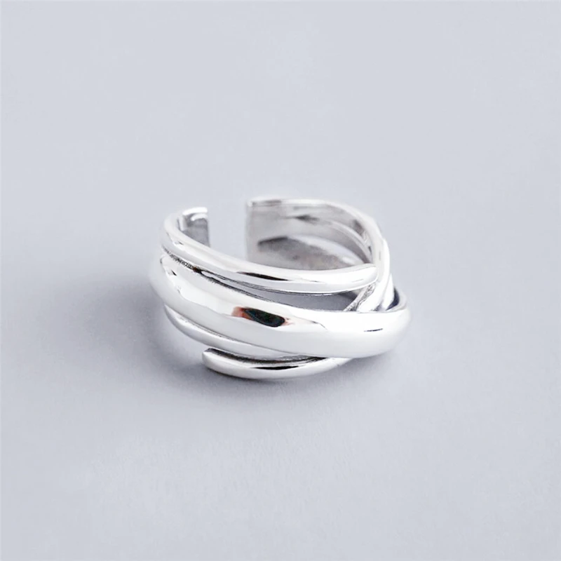 Геометрические Многослойные Открытые Кольца SRI423 с эффектом памяти, креативные 925 пробы серебряные женские Колечки с изменяемым размером
