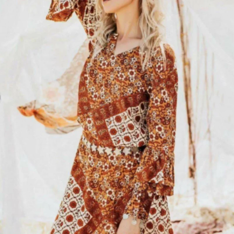 Женское этническое пляжное платье Бохо с длинным рукавом и цветочны...