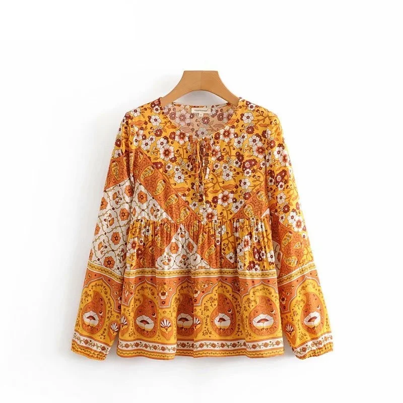 Женская пляжная блузка в богемном стиле с цветочным принтом и длинным рукавом