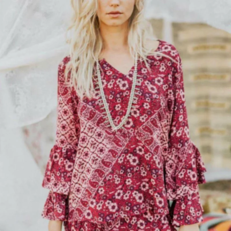 Винтажный шикарный женский топ с цветочным принтом в богемном стиле...